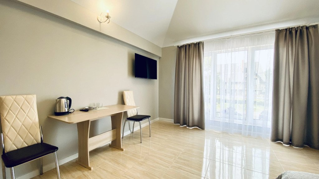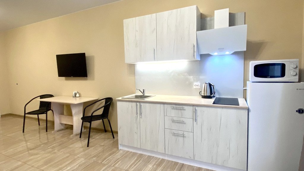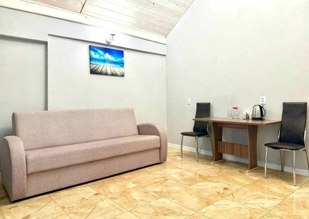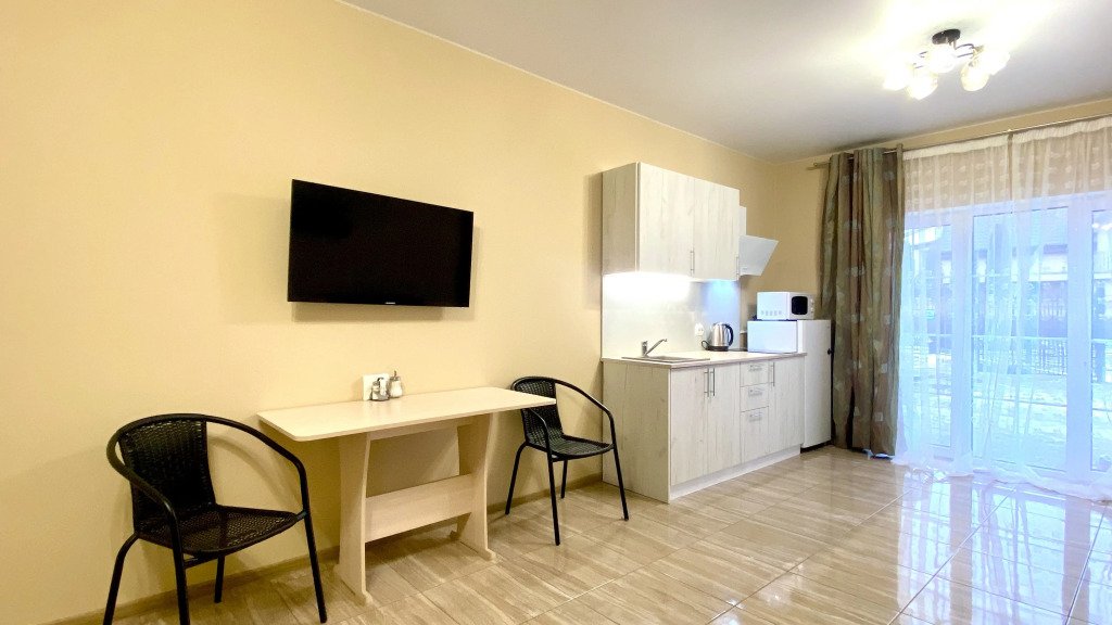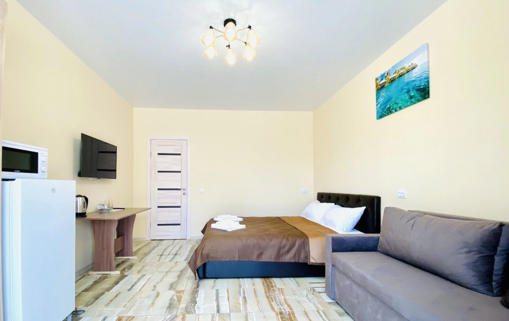 В вашем распоряжении 9 изолированных номеров, каждый из которых оборудован двуспальной кроватью, диваном, собственной ванной комнатой, обеденным столом, холодильником, микроволновой печью, чайником, посудой и телевизором.