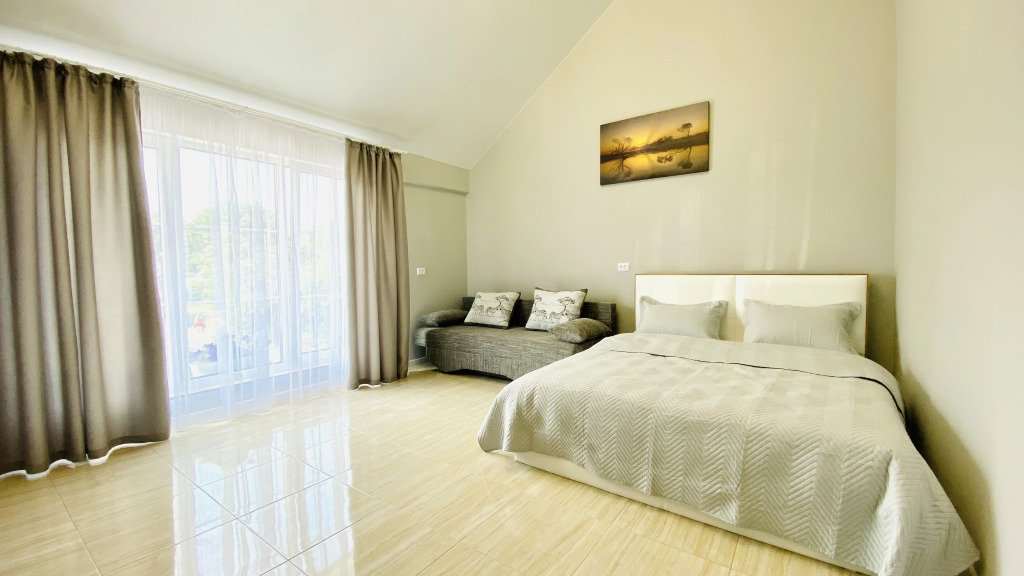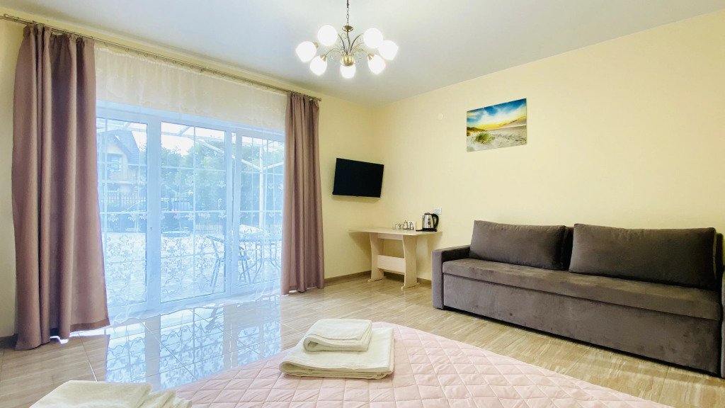 В доме выполнен свежий ремонт, вся мебель и техника новые. Для каждого гостя предоставляются постельное белье, полотенца, чай, кофе, мыло, шампунь и гель для душа.