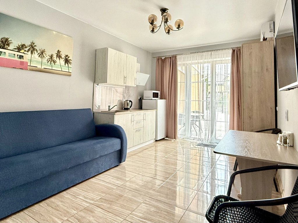 Своя огороженная территория, парковка на 7+ машин, 3 мангала, есть столики на улице под крышей. до моря 10 минут пешком медленным шагом. Большой продуктовый магазин в соседнем доме.