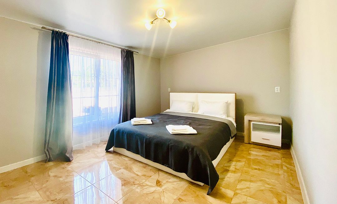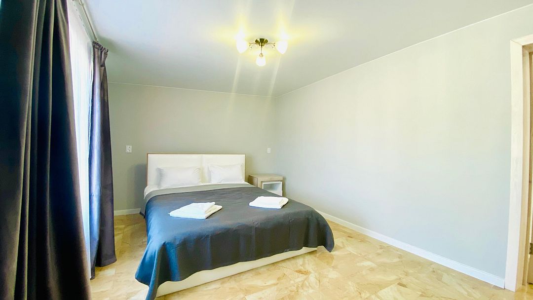 Просторный двухкомнатный номер с кондиционером расположен на 2 этаже двухэтажного дома и оснащен собственной ванной комнатой, телевизором, чайником, холодильником, микроволновой печью, посудой, феном.
