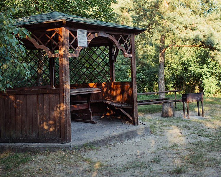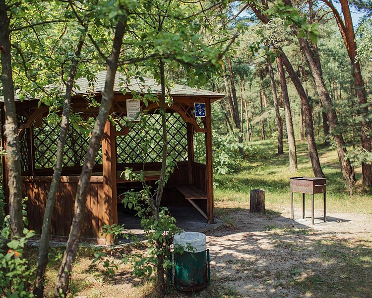 На территории отеля расположено 5 беседок с зоной для барбекю. Беседка на 6-8 человек и мангал. Угли, розжиг, шампура, решётки привозить свои.