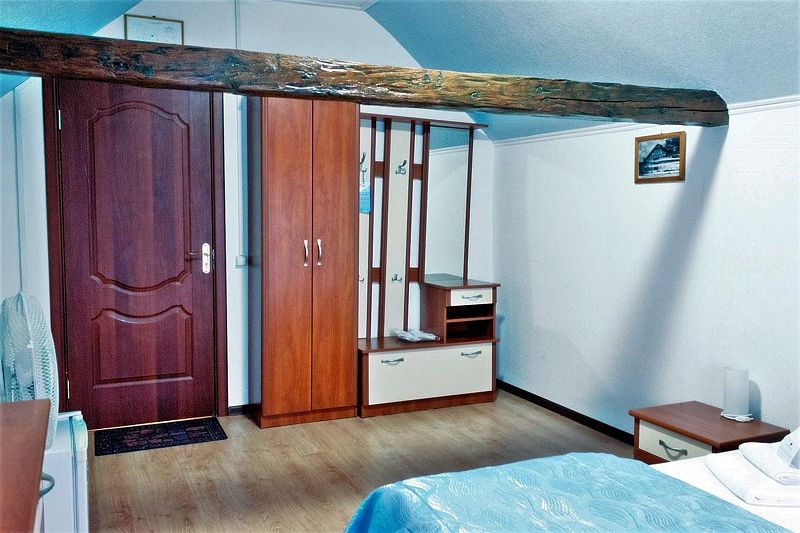 Комната, расположена в главном здании Частного дома, на втором этаже. Общая туалетная комната с душевой кабиной, находится на первом этаже. В распоряжении гостей этой комнаты входит: Шкаф , Телевизор, Сейф, Вентилятор, Отопление, Фен, Туалетные принадлежности.