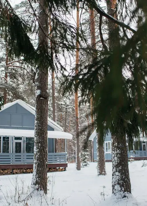 Путешествие с семьейЯ в полном восторгеПросто представьте: среди сосен на окраине черничного леса стоят коттеджи. Домики органично вписались в окружающую природу - как будто выросли вместе с соснами на территории (хотя сама база отдыха сравнительно новая).