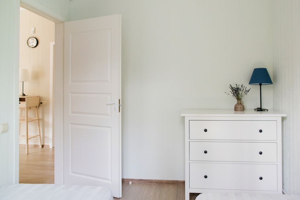 Светильник, комод, ламинат.