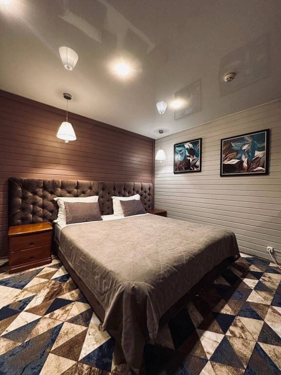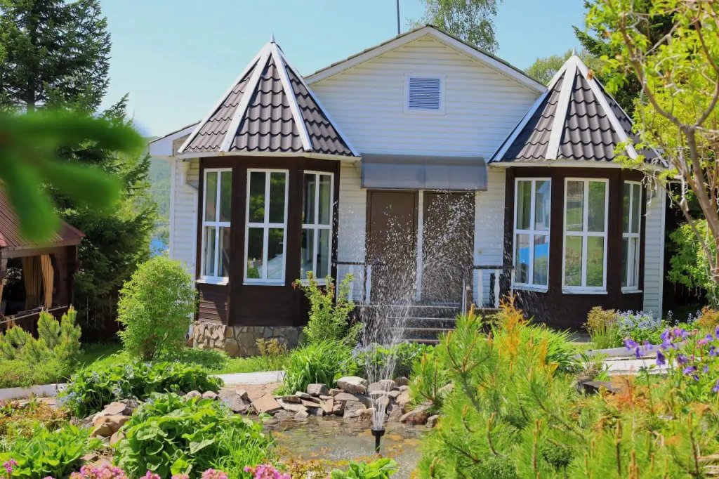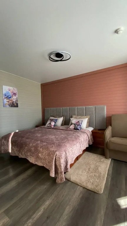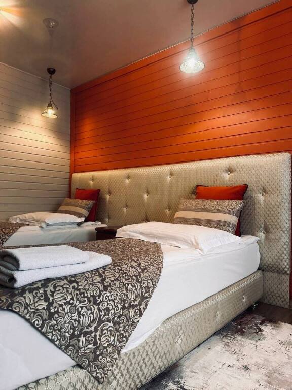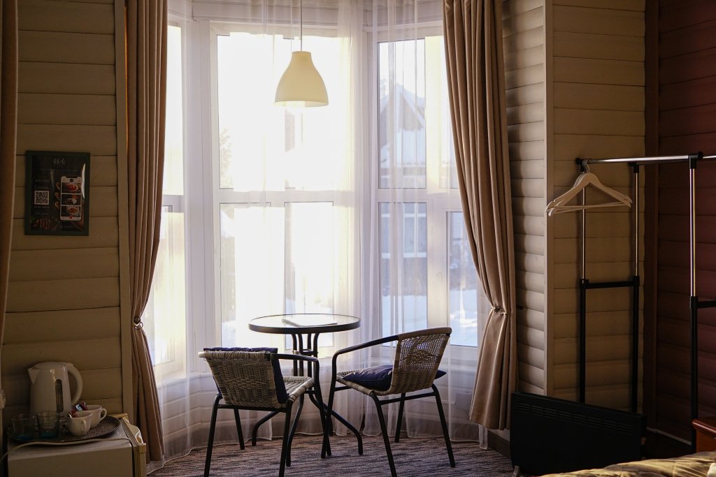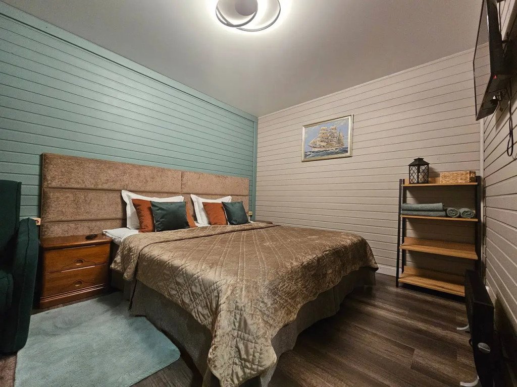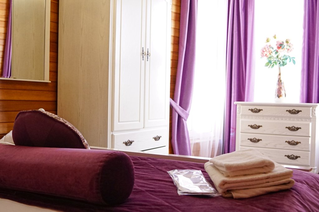 В оформлении номеров использованы натуральные материалы. Каждый номер оснащён панорамными окнами с видом на реку или сад.