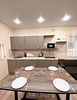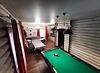 На первом этаже расположена столовая совмещенная с кухней, санузел и спальная комната. Кухня оборудована всеми кухонными принадлежностями (имеется холодильник, газовая плита и микроволновая печь, а также электрический чайник). В столовой расположен бильярдный стол.