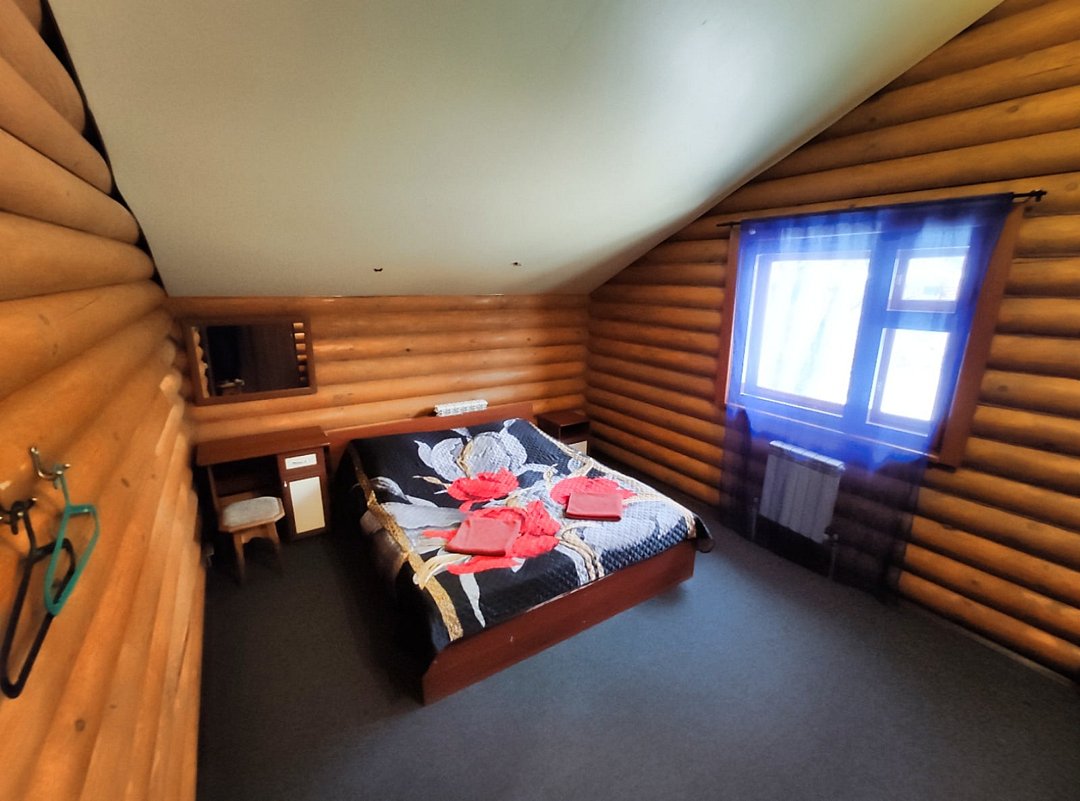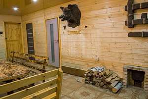 Двухэтажный деревянный сруб. За дополнительную плату можно арендовать баню или банный комплекс (2 часа минимум).