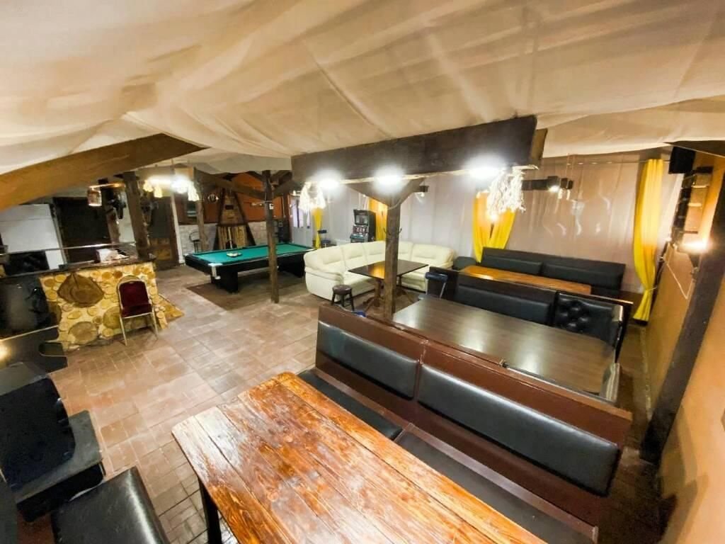Банкетный зал для проведения торжеств, семинаров. В зале расположены столы и стулья. Кухня оборудована всеми кухонными принадлежностями. Имеется музыкальный центр, караоке, проектор (для проведения семинаров).