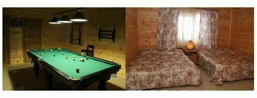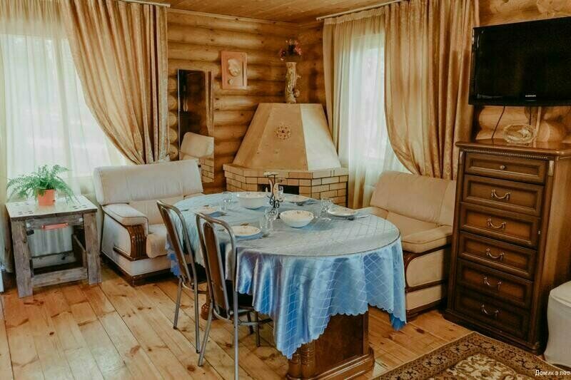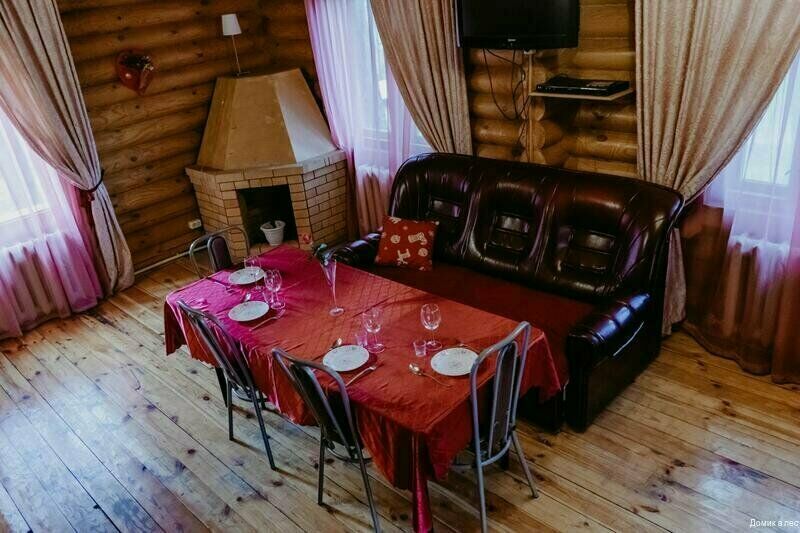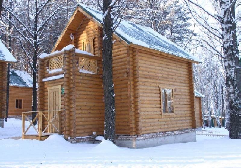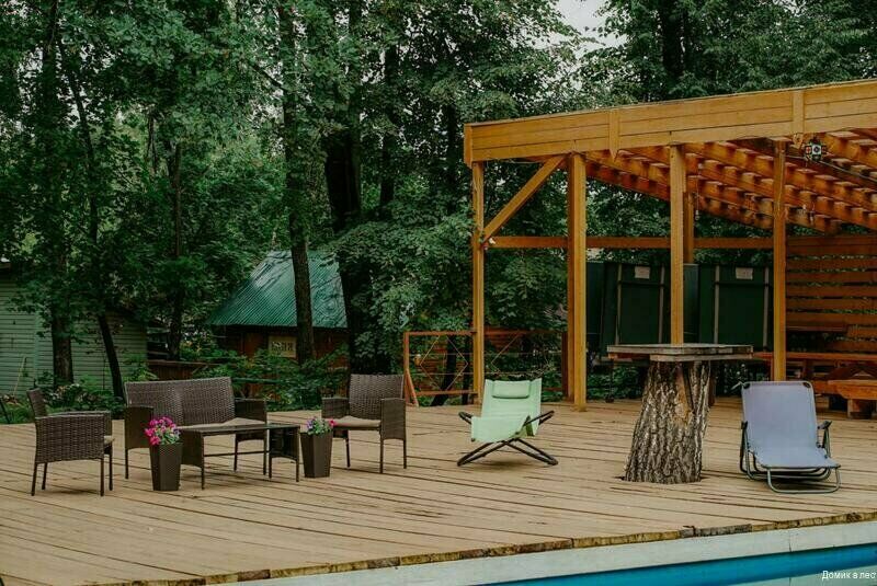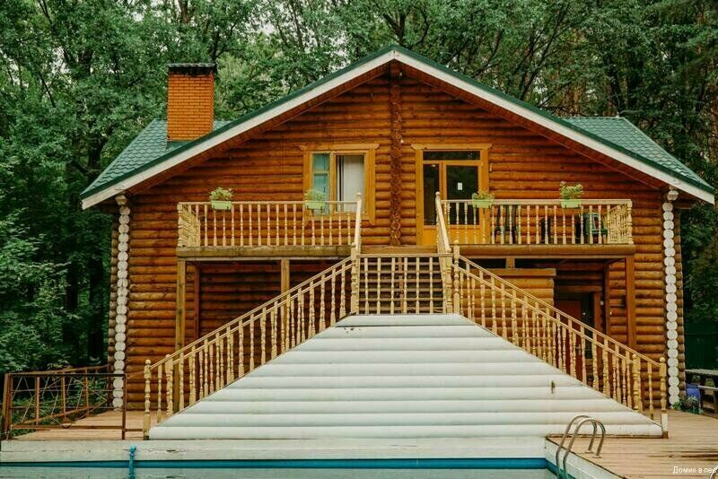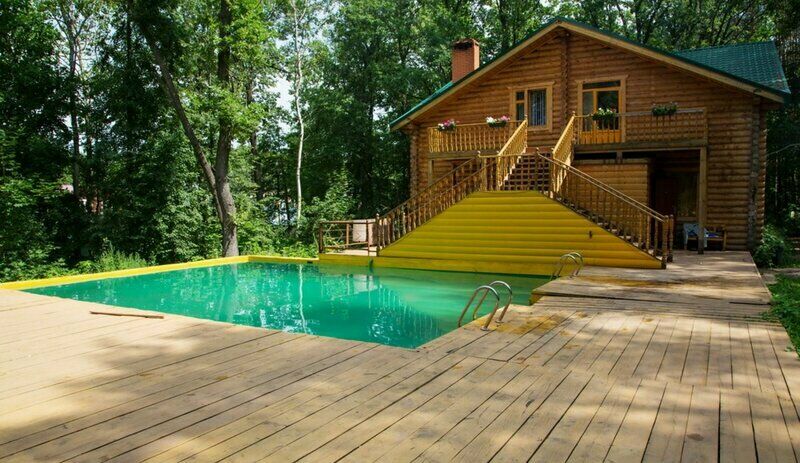 VIP-дом - двухэтажный бревенчатый сруб, с которым рядом подогреваемый открытый бассейн.