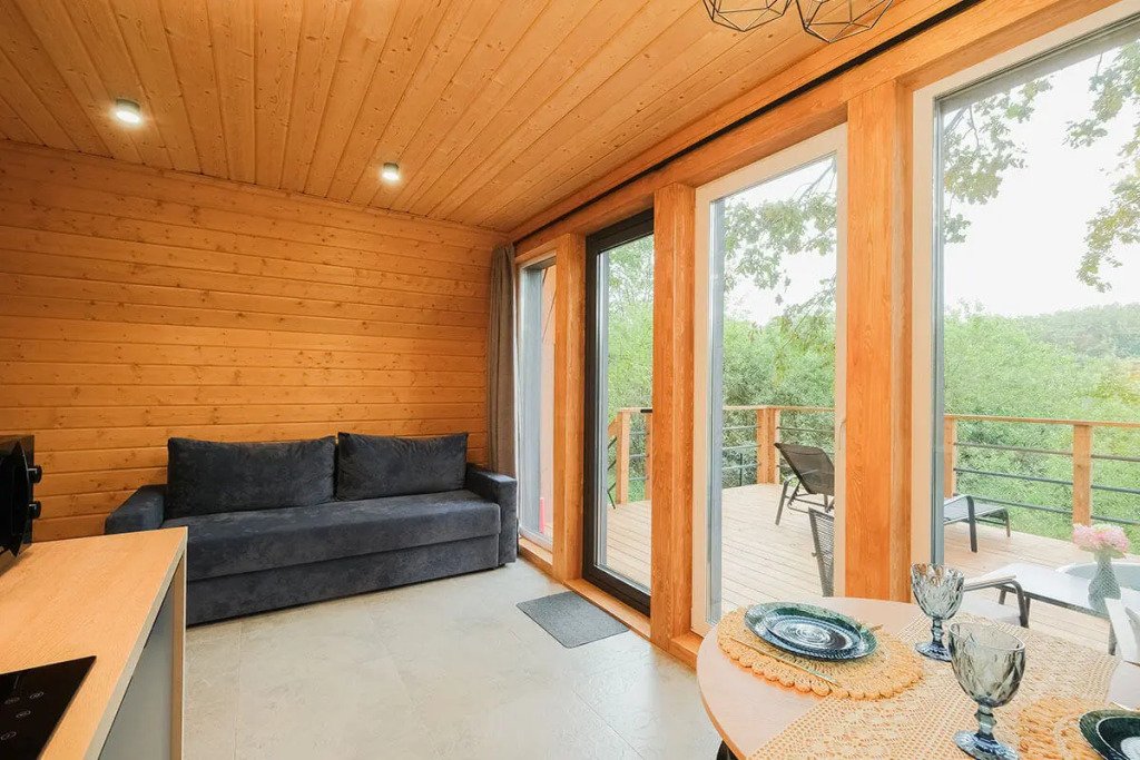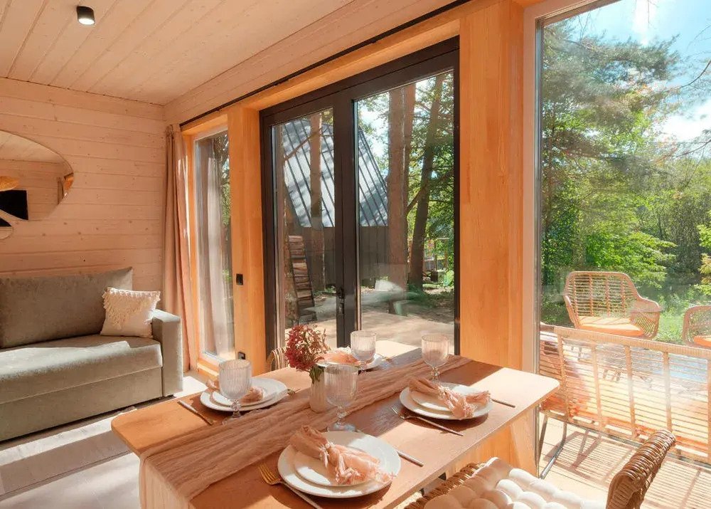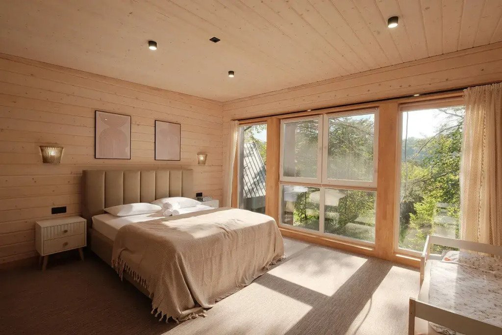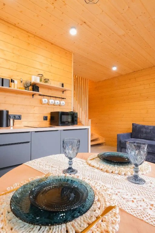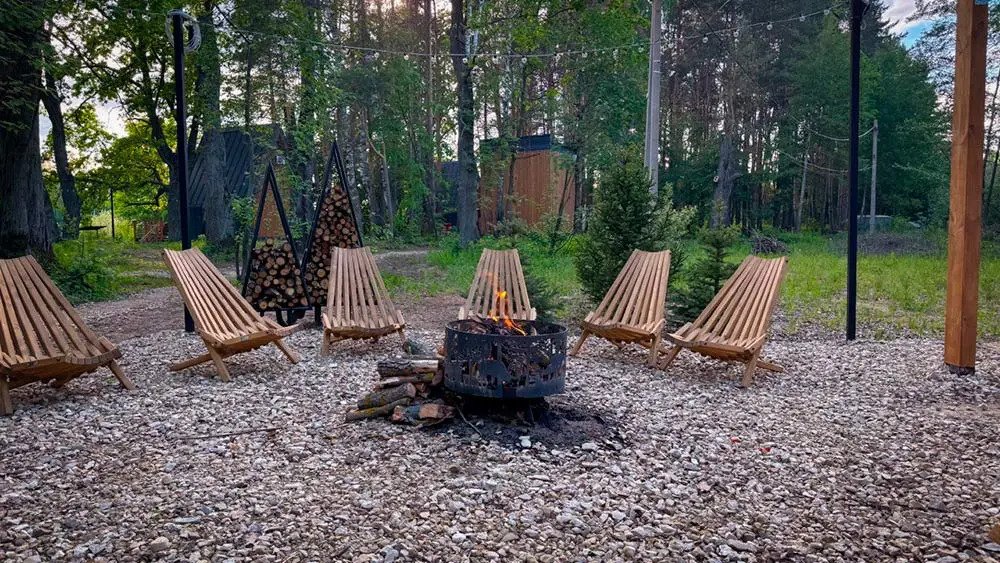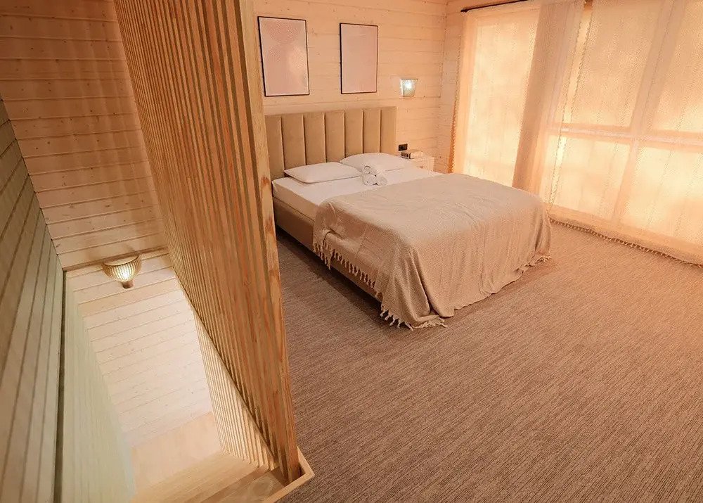 Для категории «Четырёхместные апартаменты с видом на реку» дровяная купель входит в стоимость, гости могут воспользоваться ей после 18:00.