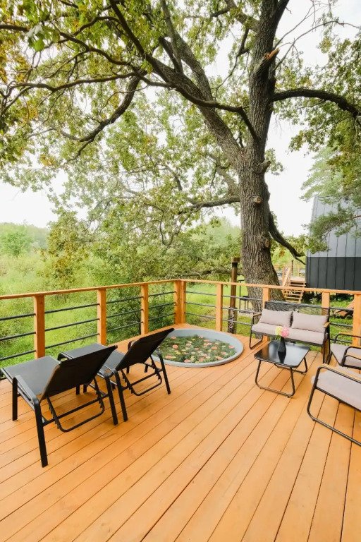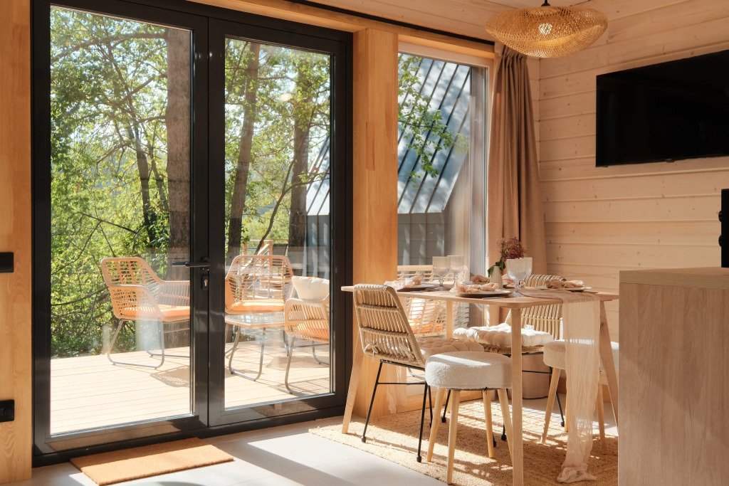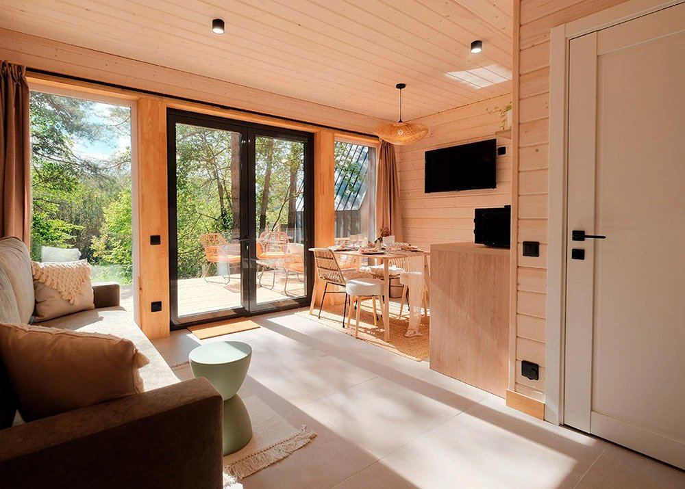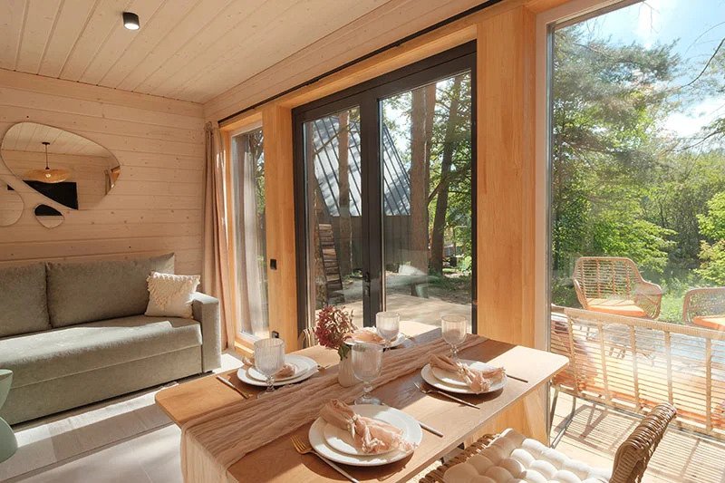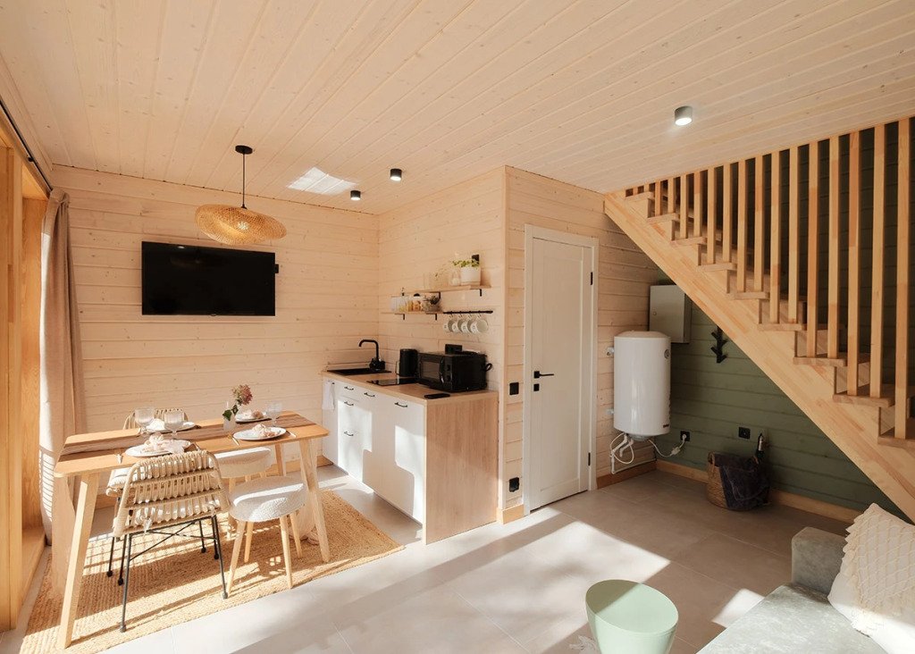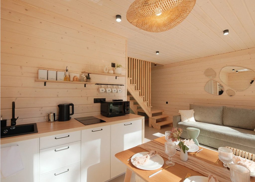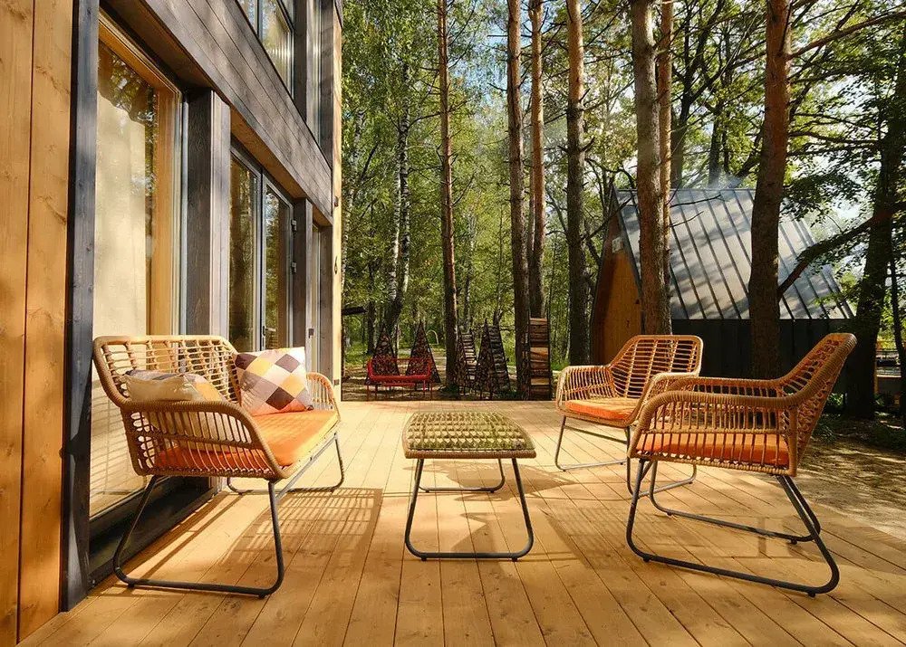 Для категории «Четырёхместные апартаменты с видом на реку» дровяная купель входит в стоимость, гости могут воспользоваться ей после 18:00.