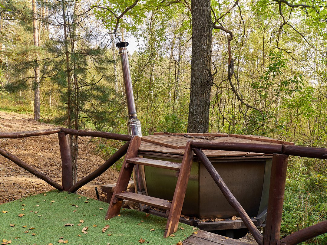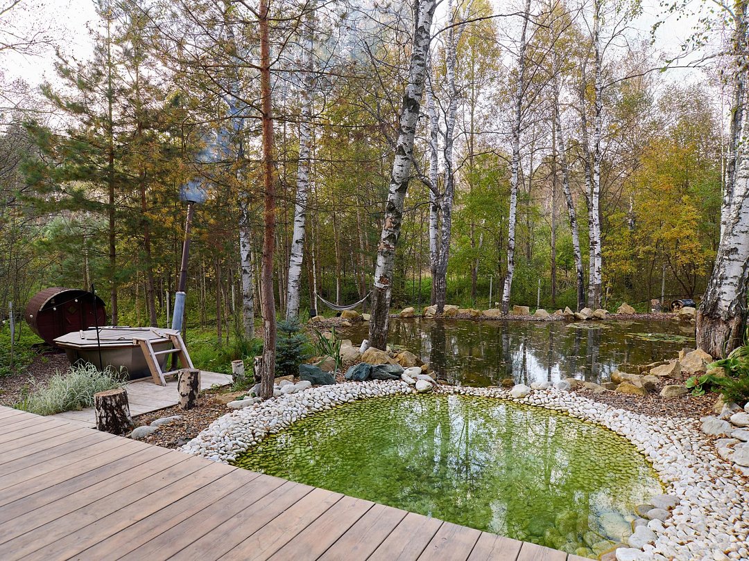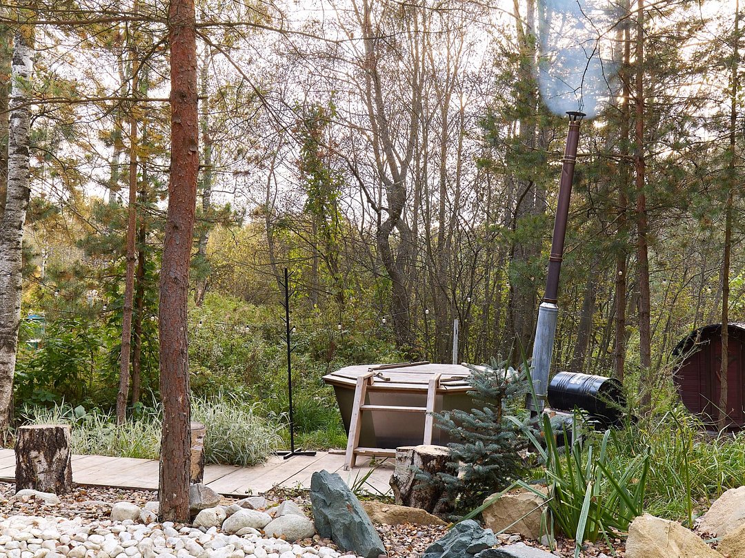 Вы сможете замедлиться в сибирском чане с травами, а после окунуться в природный охлаждающий водоем.