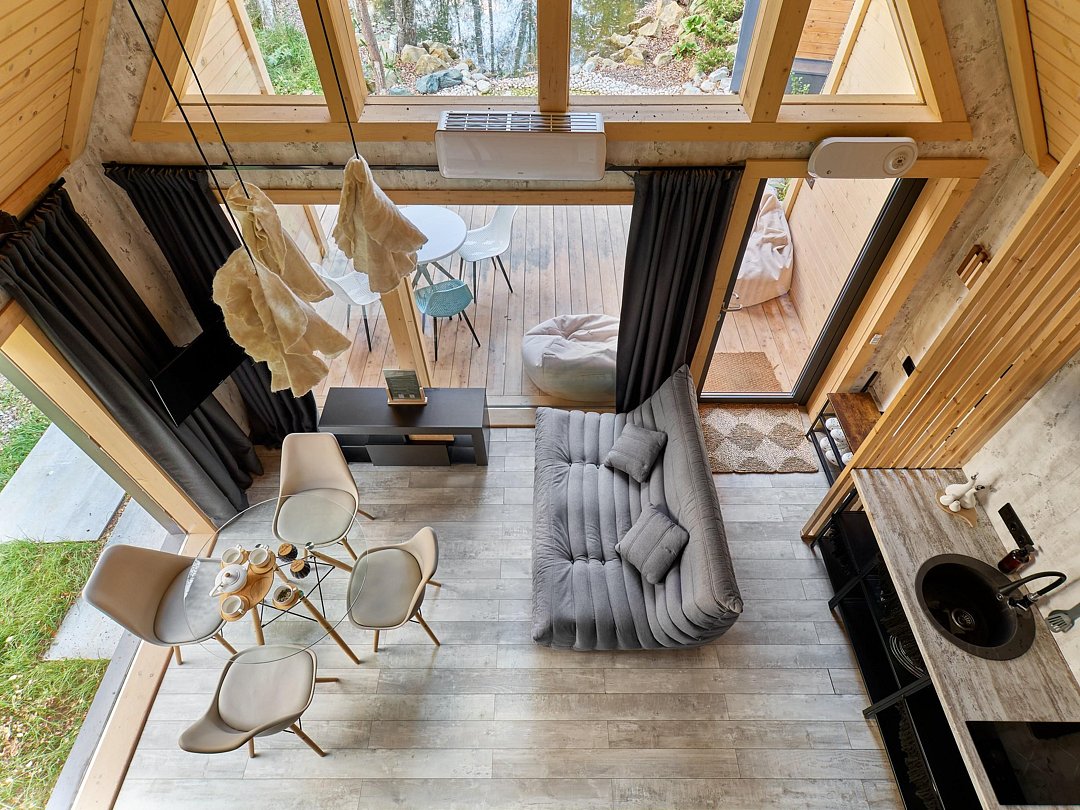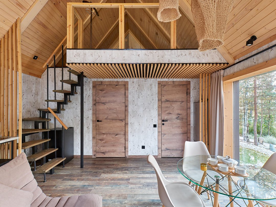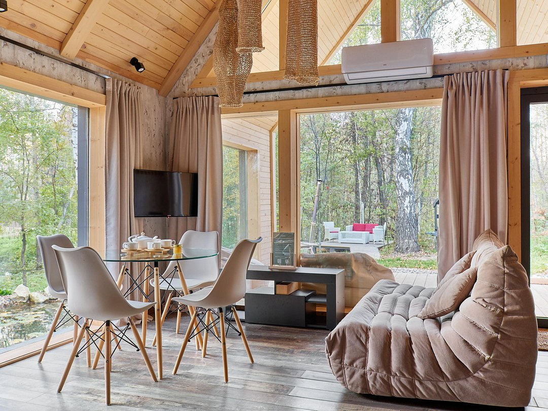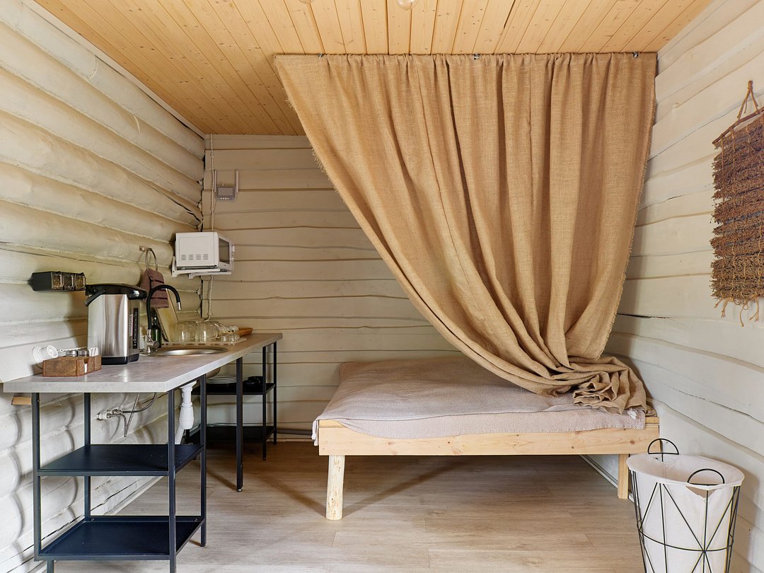 Хозяйка пространства вручную создает детали интерьера домов, вкладывая теплоту в каждый из них. Домики окутаны смешанным лесом и тремя озерцами с родниковой водой. Из окна вы увидите озера и сможете попробовать самый вкусный домашний мед.