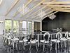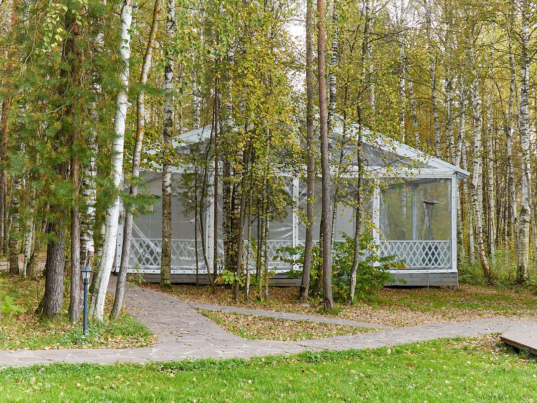 Летняя веранда — просторная площадка 150 м² на берегу озера с панорамным видом и уютной, романтичной атмосферой, идеально подходящая для летних праздников и выездных церемоний; вмещает до 90 гостей.