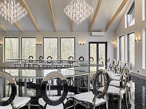 Элегантный банкетный зал «Шелест» площадью 189 м² и панорамными окнами предлагает уникальную атмосферу для мероприятий. Зал может принять до пятидесяти гостей и идеально подходит для свадеб, юбилеев или деловых встреч.