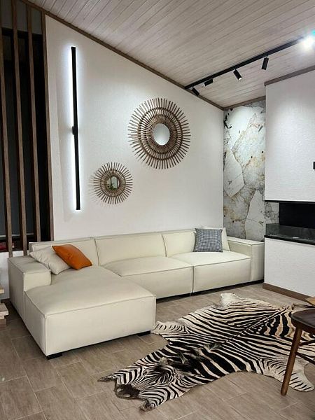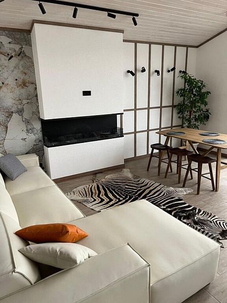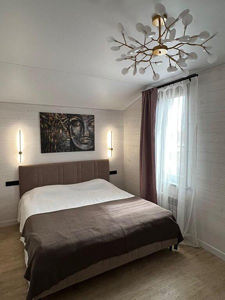 Современный коттедж с дизайнерским интерьером и всеми удобствами для комфортного проживания. 10 спальных мест, два санузла. Кухня оборудована всей необходимой посудой и бытовой техникой. На террасе находится банный чан.