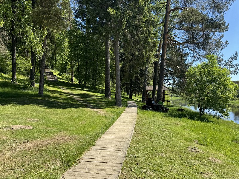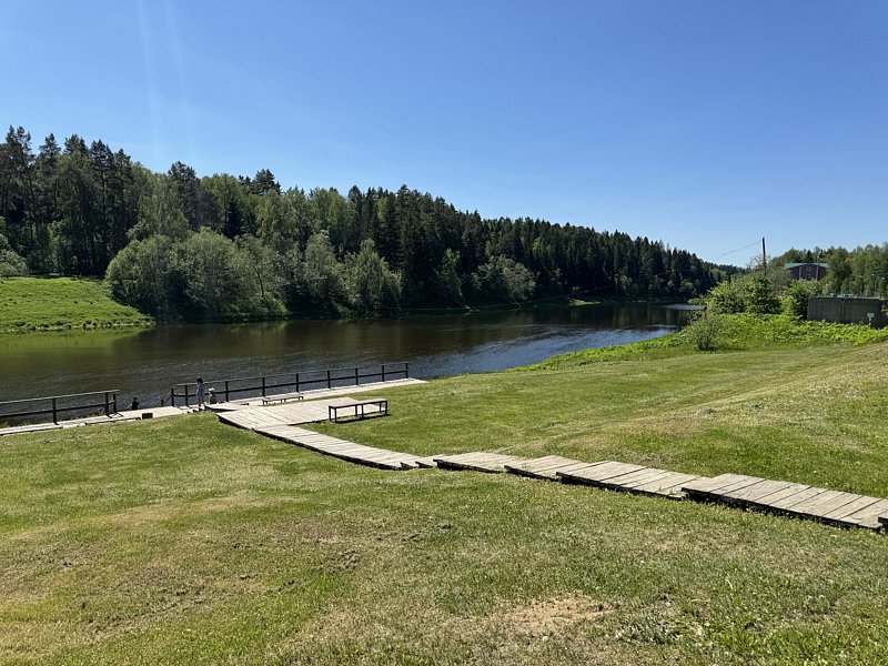Большая красивая территория, особенно впечатляет спуск к реке. Пляж оборудован весьма скромно, но полюбоваться пейзажем можно.