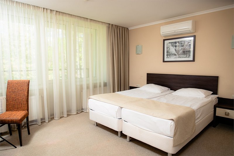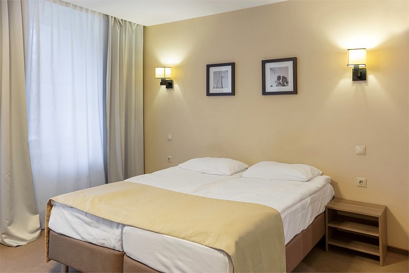 Однокомнатный номер с двумя односпальными кроватями, санузлом с душевой кабиной, балконом. Номер оборудован кондиционером, мини-холодильником, сейфом, цифровым ТВ, Wi-Fi. 2 основных места. Максимальная вместимость 2 чел.