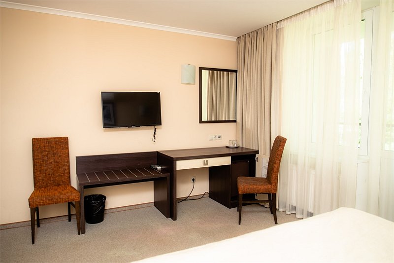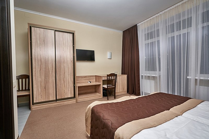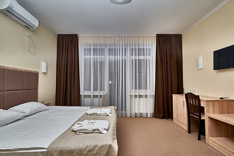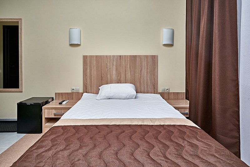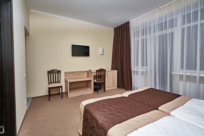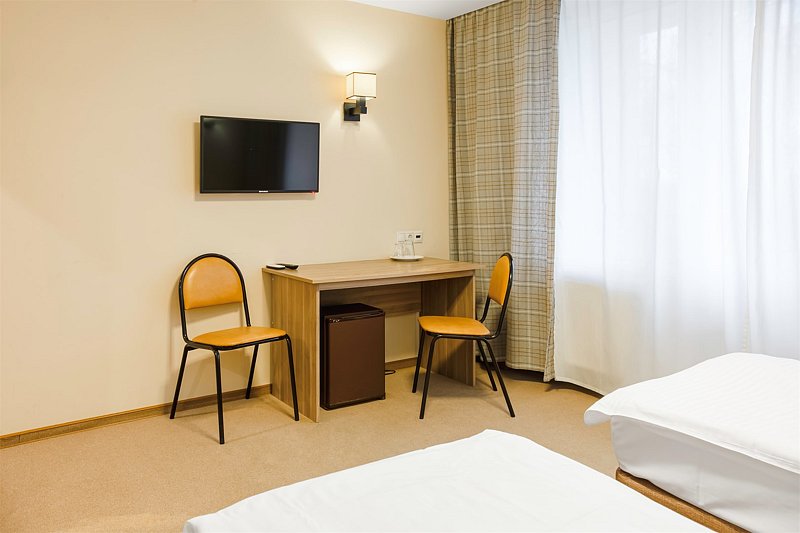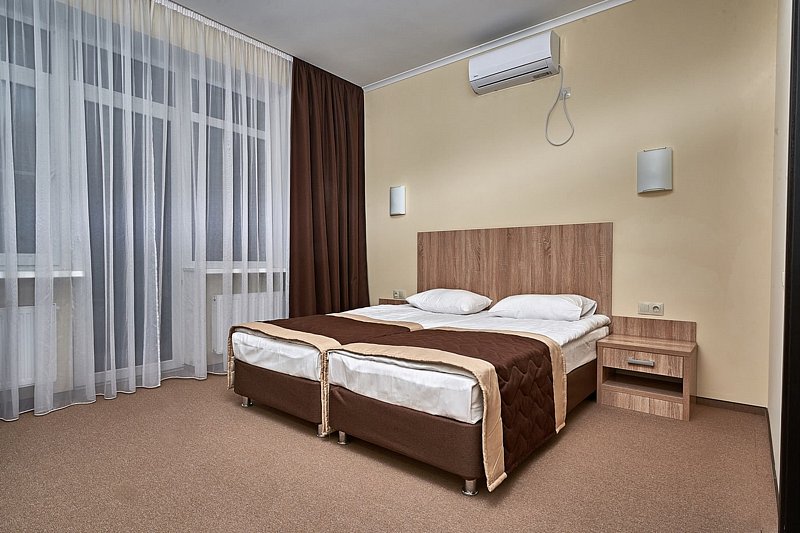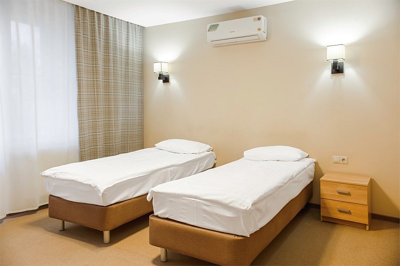 Бюджетный однокомнатный номер с двумя односпальными кроватями, санузлом с душевой кабиной, балконом. Номер оборудован кондиционером, мини-холодильник, цифровым ТВ. 2 основных места. Wi-Fi в номерах .