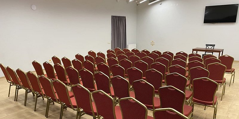 Для проведения корпоративных мероприятий в парк-отеле «Актёр-Руза» подготовлен вместительный просторный конференц-зал «Сцена». Вместимость: 100 человек.