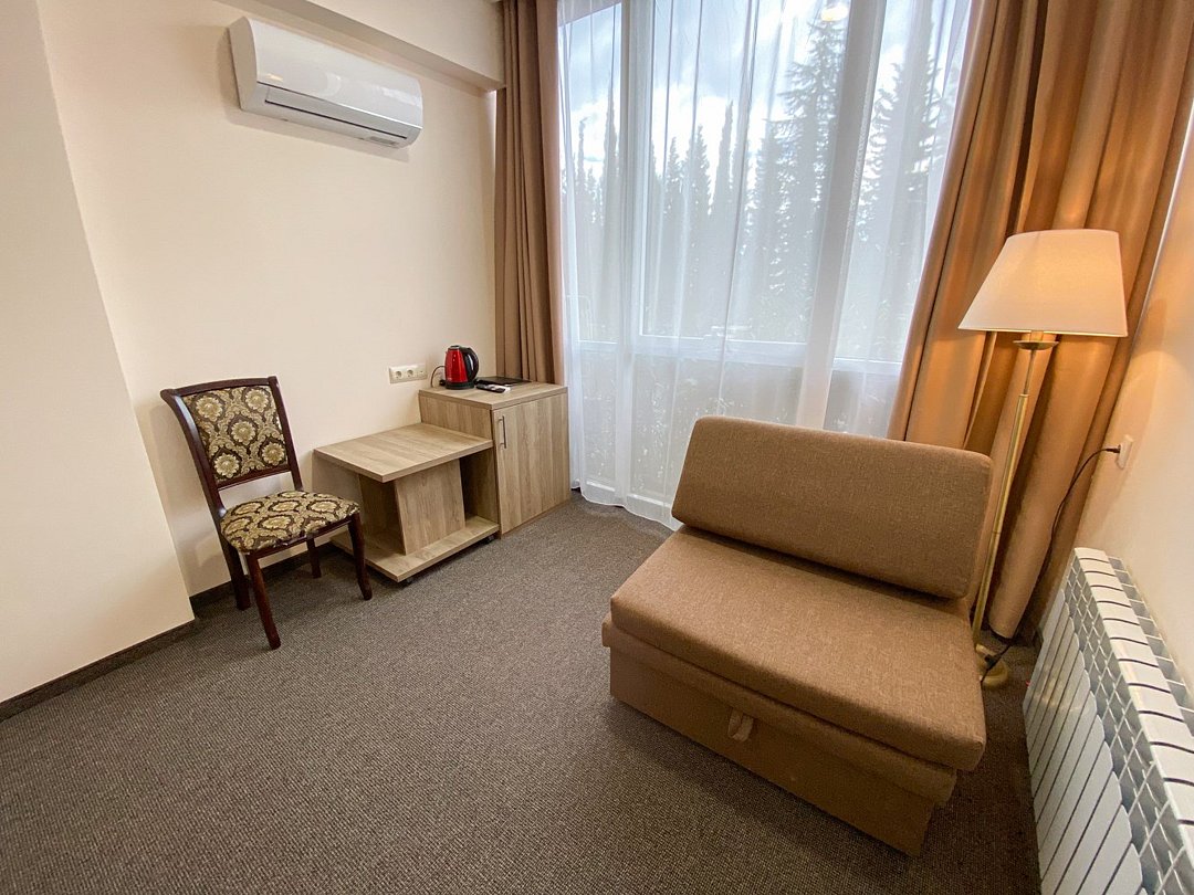 Однокомнатный современный номер с гармоничной планировкой. Две полутороспальные кровати (DBL/TVIN), прикроватные тумбы, шкаф, письменный стол, зеркало, кресло или полуторный диван Современная душевая, тропическая душ-лейка, туалет, гигиенический душ. Полотенца (для лица, банное, для ног) полотенцесушитель, фен, мыло. Оборудование: кондиционер, безлимитный Wi-Fi , LCD TV, спутниковое телевидение, 40 каналов, включая детские, набор посуды (графин и 2 стакана), чайник, барный холодильник, центральное отопление, фен. Покрытие – ковровое. Расположение: корпуса 3, 4 южная или северная сторона. Фото и размер номера может отличаться от опубликованных на сайте, но гарантированно имеет описанную комплектацию.Услуги и удобства