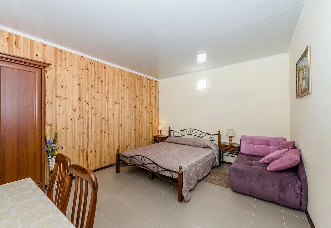 В комфортных номерах базы отдыха установлены удобные кровати, холодильник, кондиционер, собственный санузел с душем. На свежем воздухе обустроена мангальная зона. Питание отдыхающих организовано в столовой. Также работает кафе. Для любителей водных развлечений на территории базы обустроено 2 бассейна – для детей и взрослых. Маленькие постояльцы по достоинству оценят наличие большой игровой площадки. Вся территория базы находится под круглосуточной охраной. Расстояние до пляжа Азовского моря составляет 2 километра.