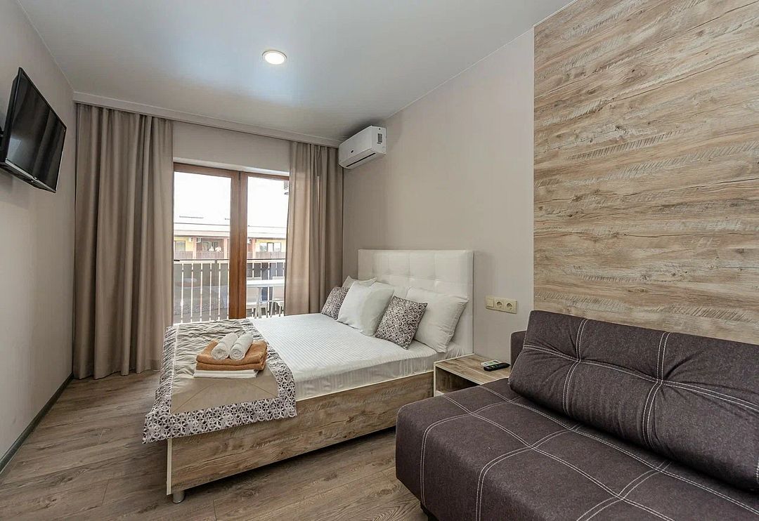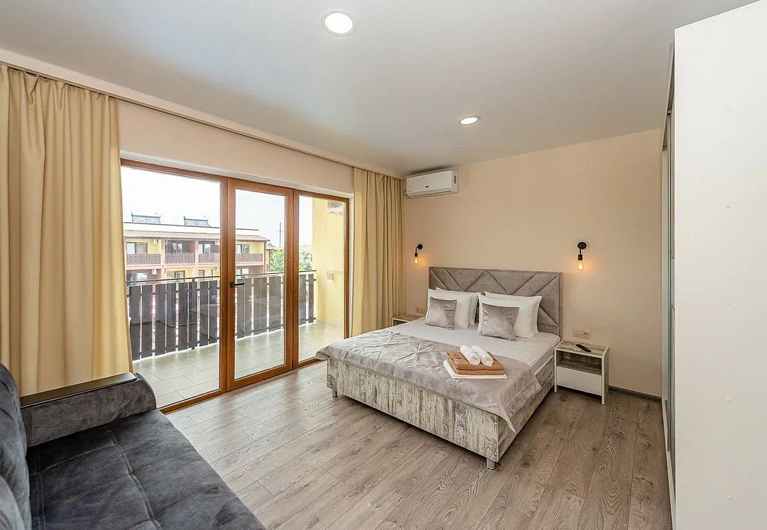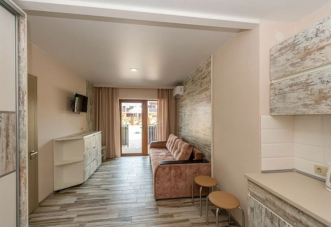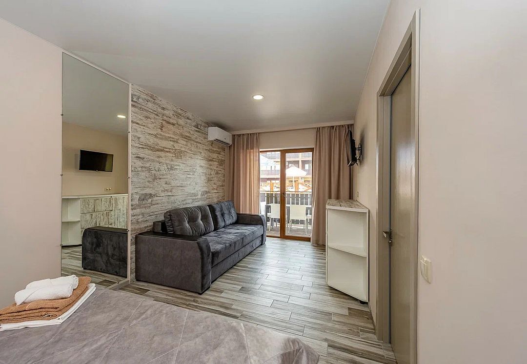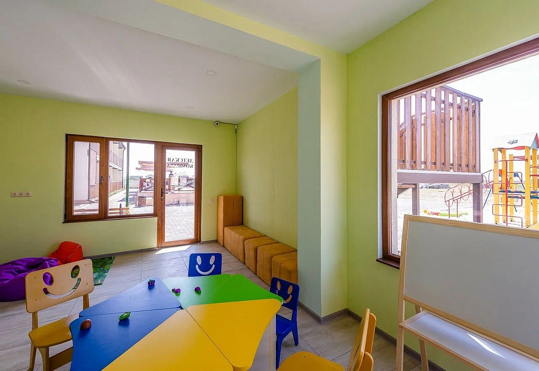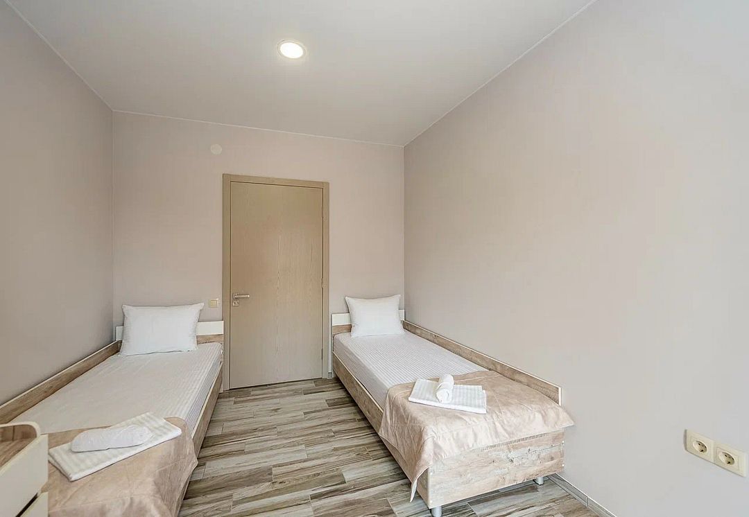 Комплекс включает 4 корпуса (3 3-этажных и 1 2-этажный) с комфортабельными номерами. Комнаты рассчитаны на проживание 2-3 человек. Интерьер выполнен в светлых оттенках. Установлены удобные кровати для сна и шкафы для одежды, есть телевизор, кондиционер, холодильник, электрический чайник, а также индивидуальная ванная комната.