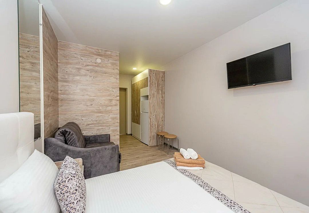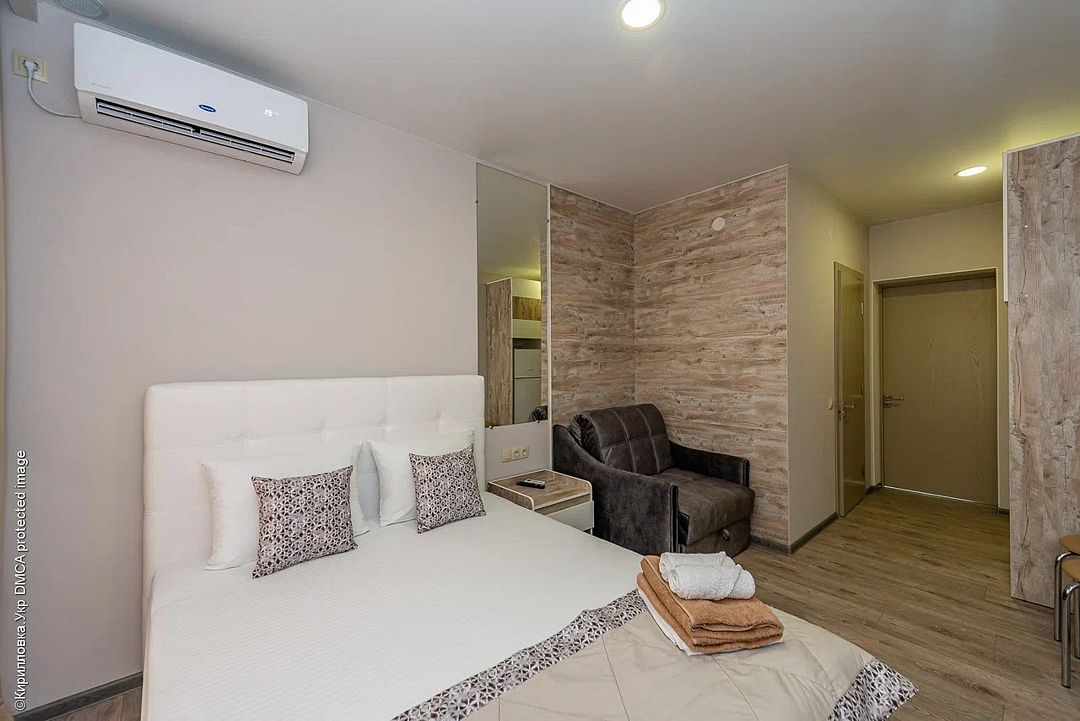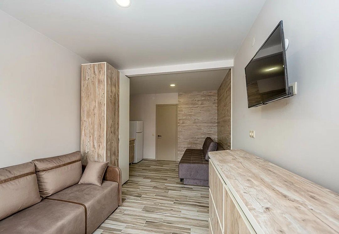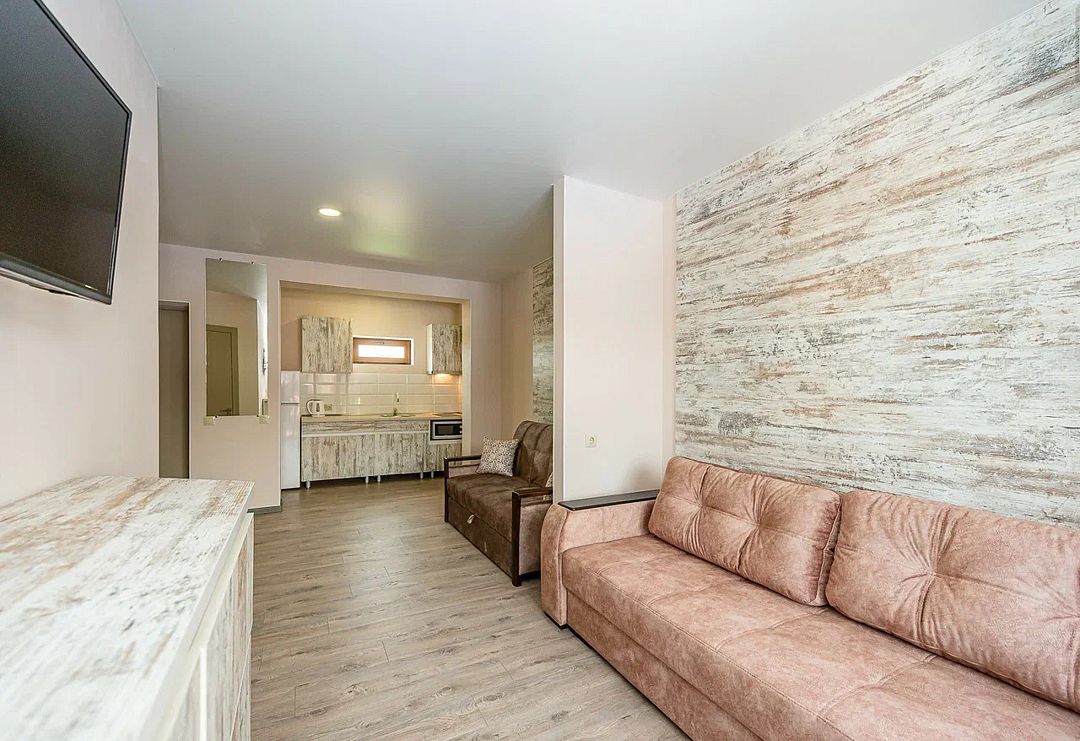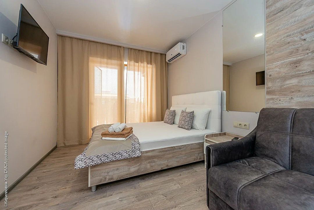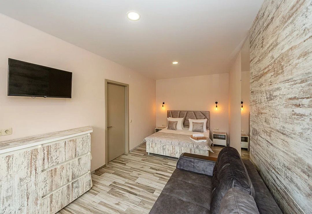 Комплекс включает 4 корпуса (3 3-этажных и 1 2-этажный) с комфортабельными номерами. Комнаты рассчитаны на проживание 2-3 человек. Интерьер выполнен в светлых оттенках. Установлены удобные кровати для сна и шкафы для одежды, есть телевизор, кондиционер, холодильник, электрический чайник, а также индивидуальная ванная комната.