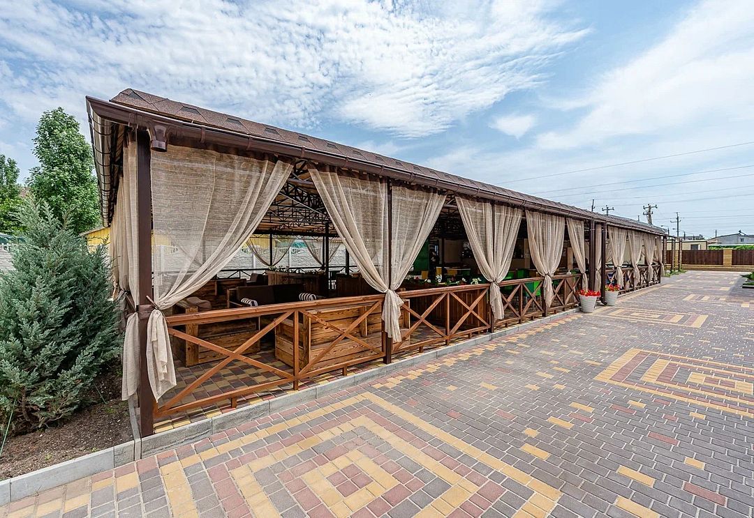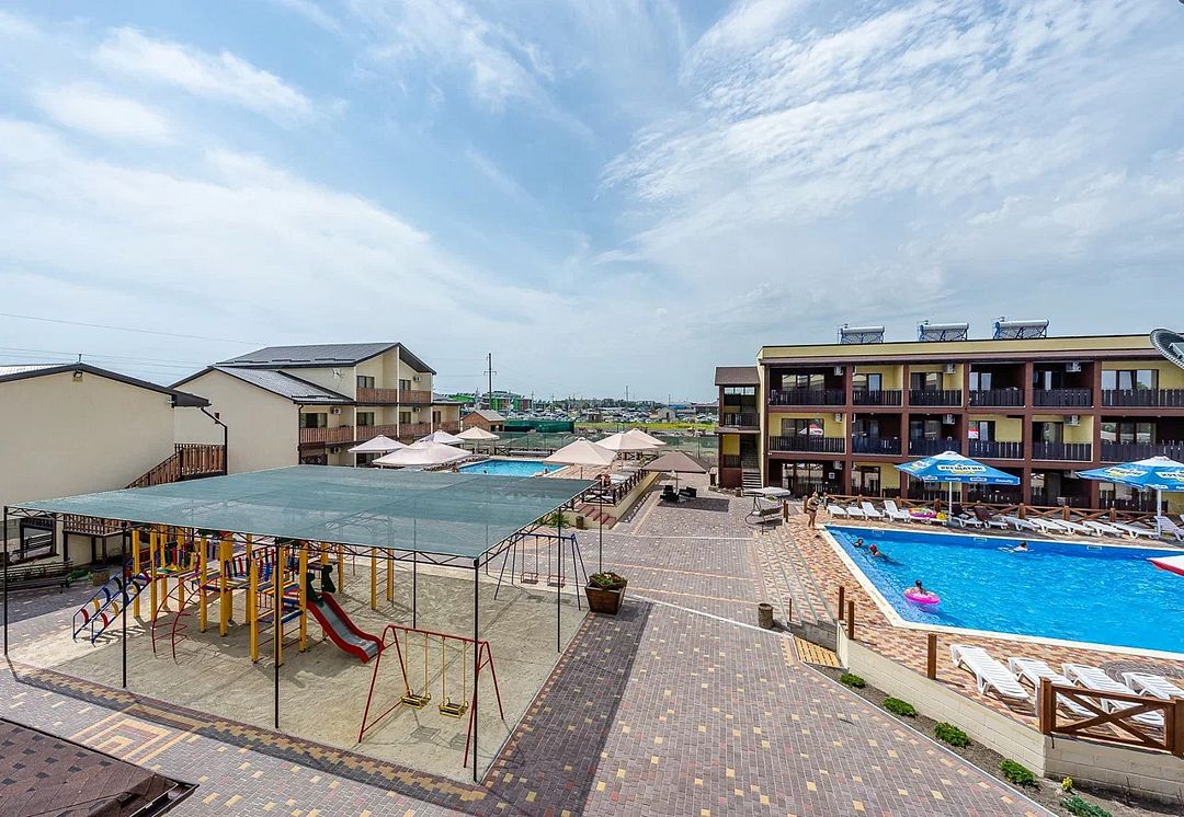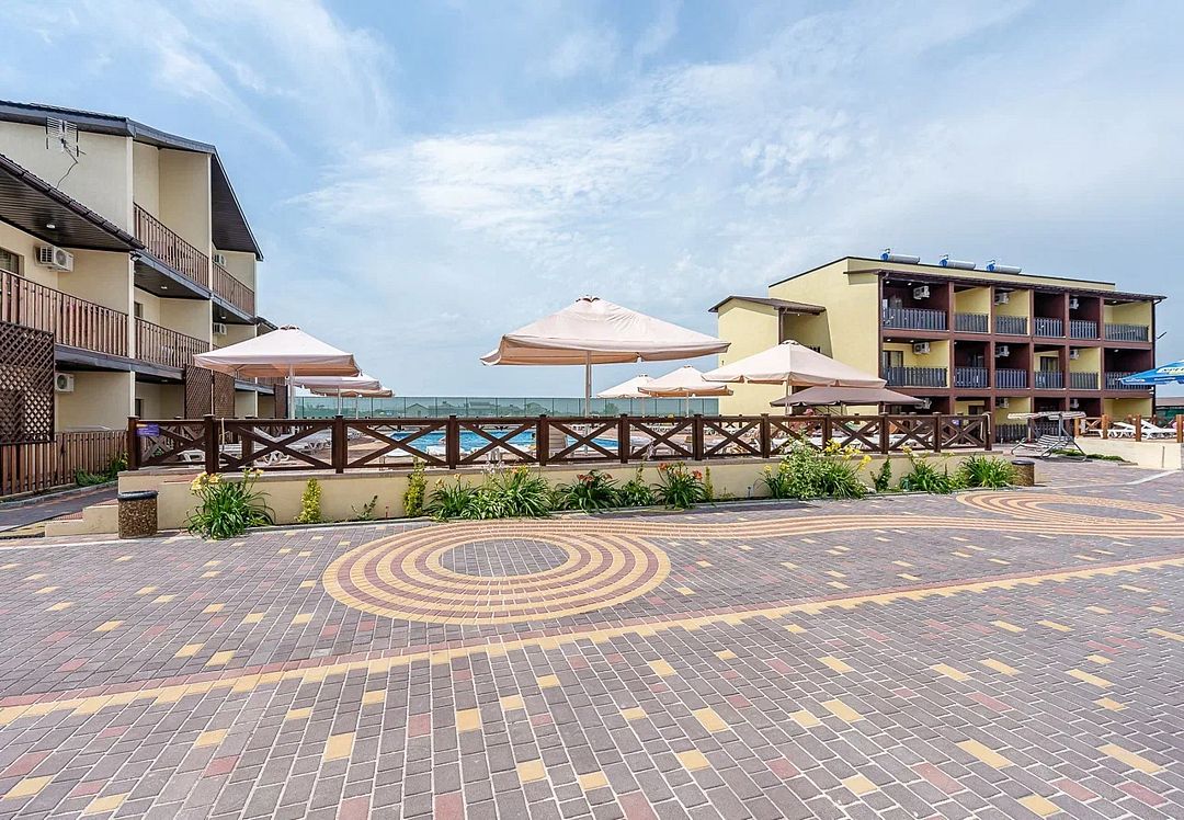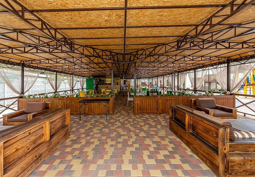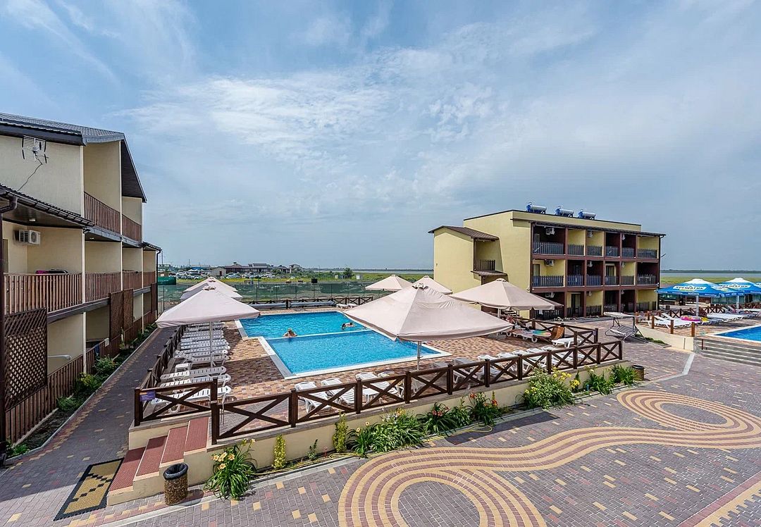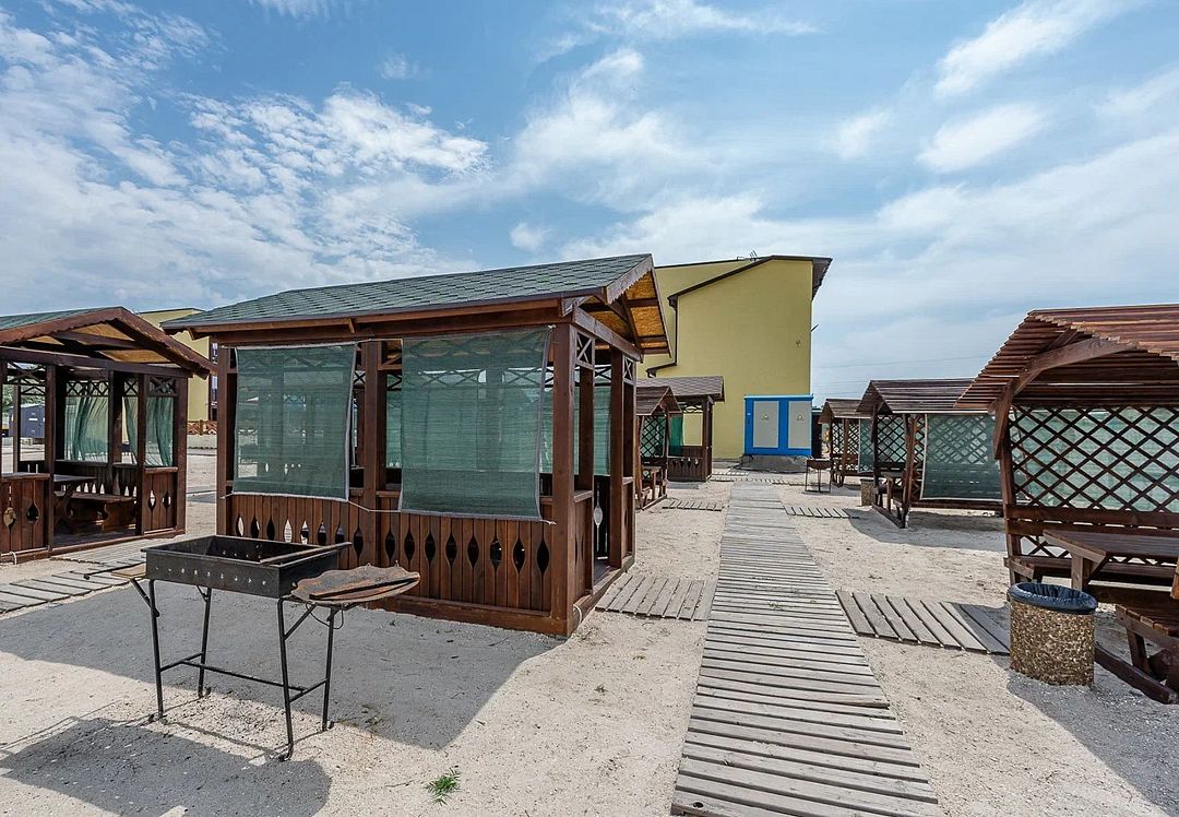 На территории базы отдыха есть мангальная зона, а также бар с летней площадкой. Территория закрыта, на ней расположены два больших бассейна: взрослый (8x8 м) и детский (6x6 м) с пресной водой. Есть шезлонги, теневые зонты, детская площадка и игровая комната. Береговая линия пляжа песчано-галечная, оборудована раздевалками, зонтами от солнца и водными развлечениями на любой вкус.
