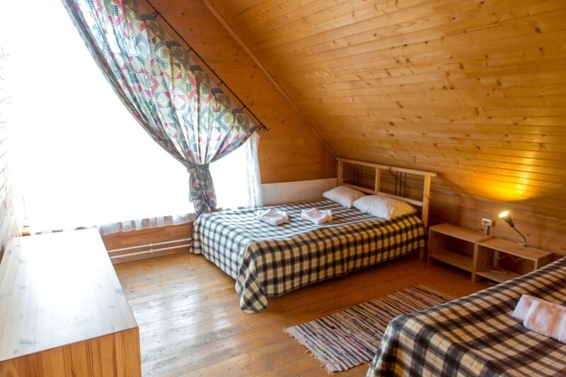 На 2-ом этаже: санузел, две спальни с трехместным размещением (двуспальная и односпальная кровати).