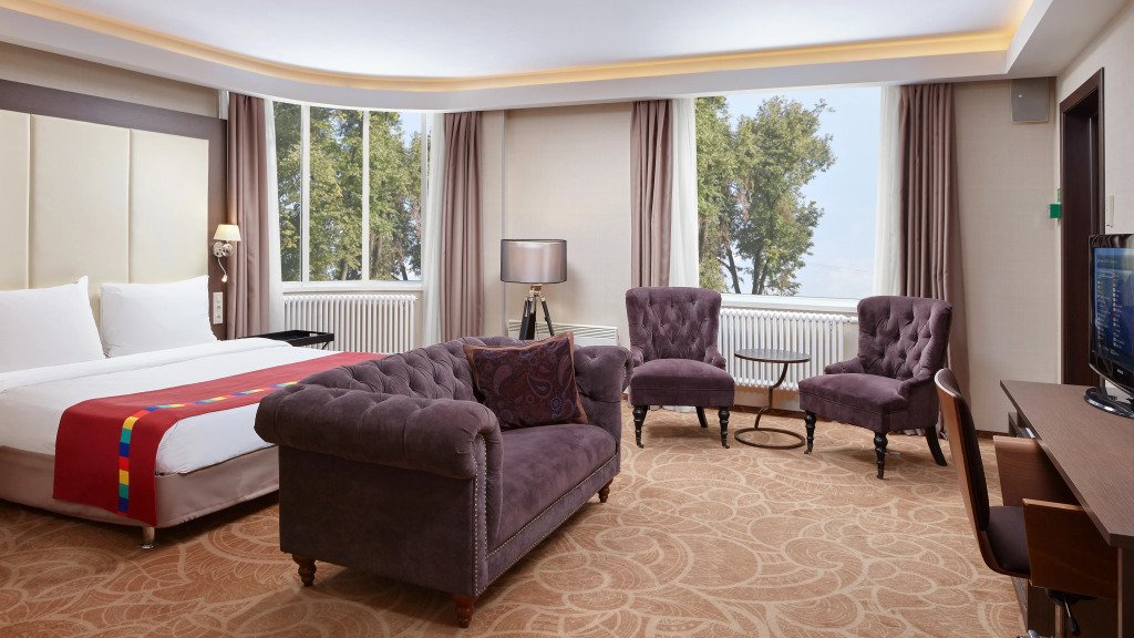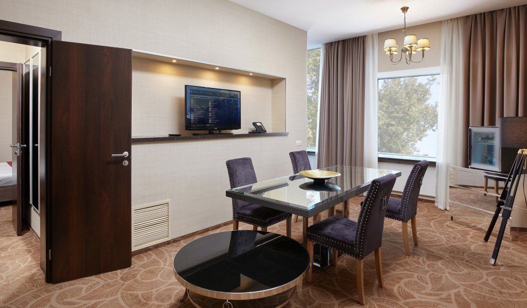 В номере гости найдут телевизор, мини-бар и халат. Перечисленные услуги есть не во всех номерах.