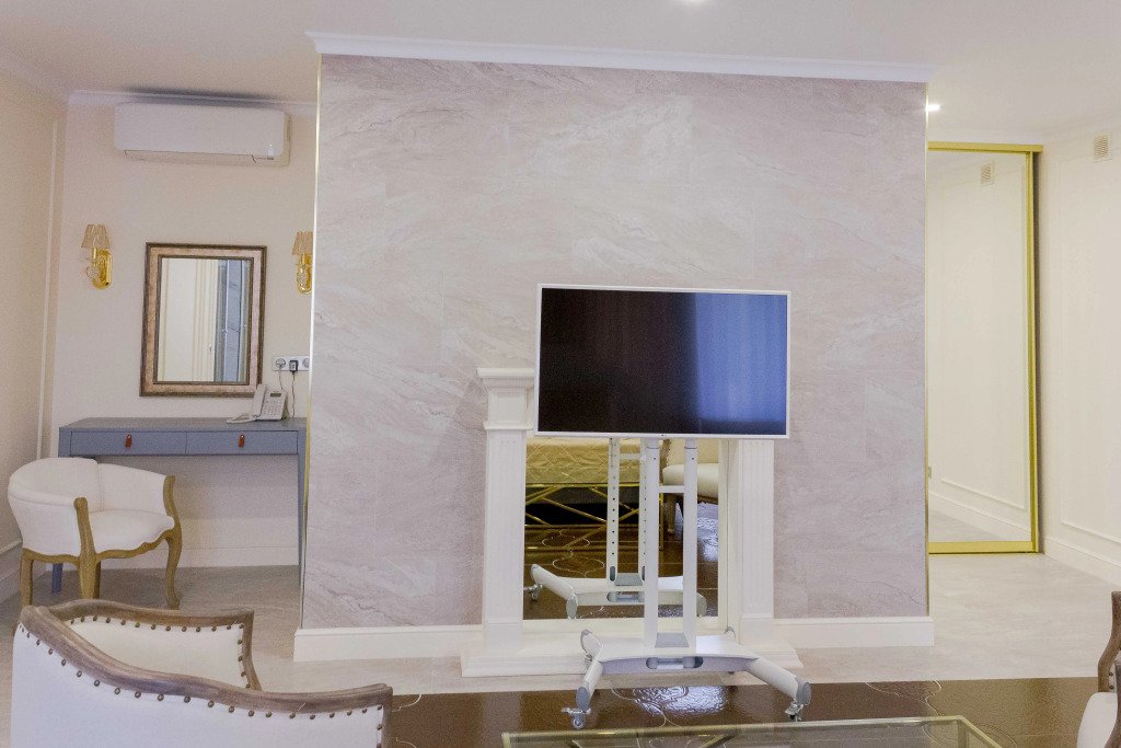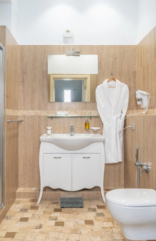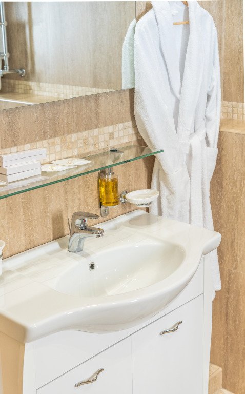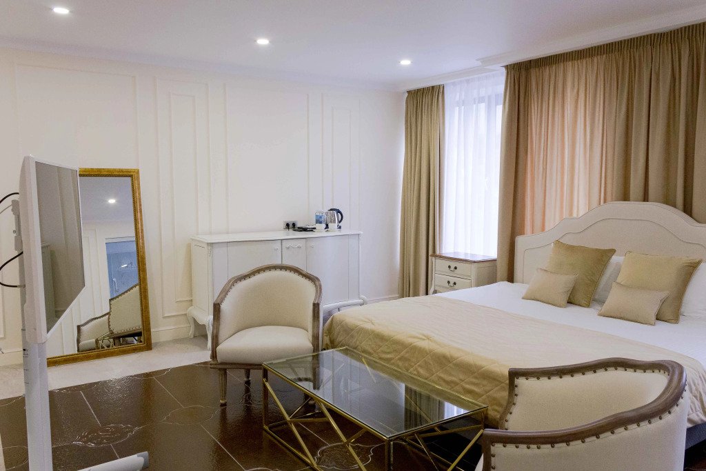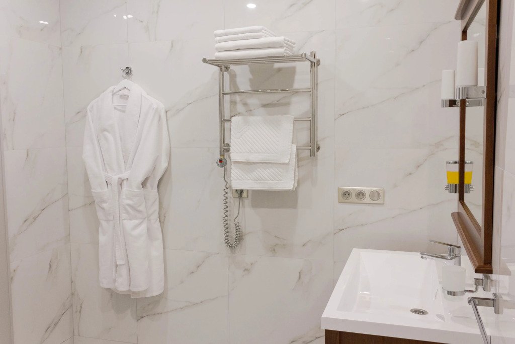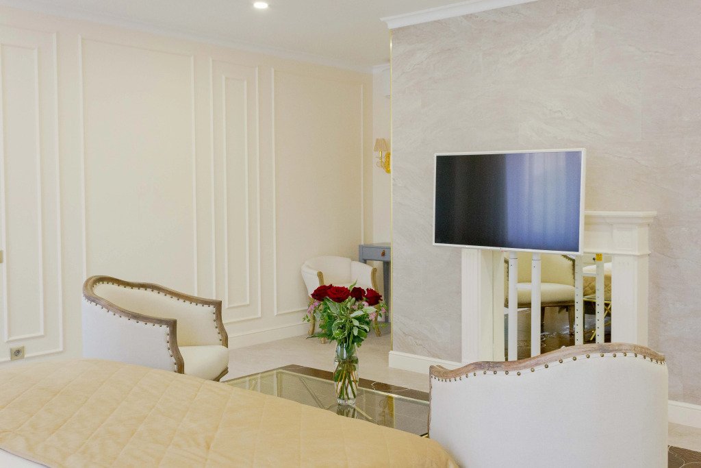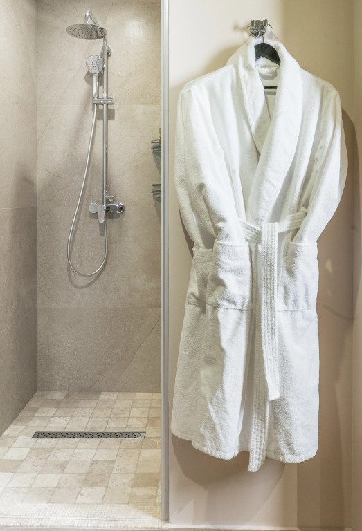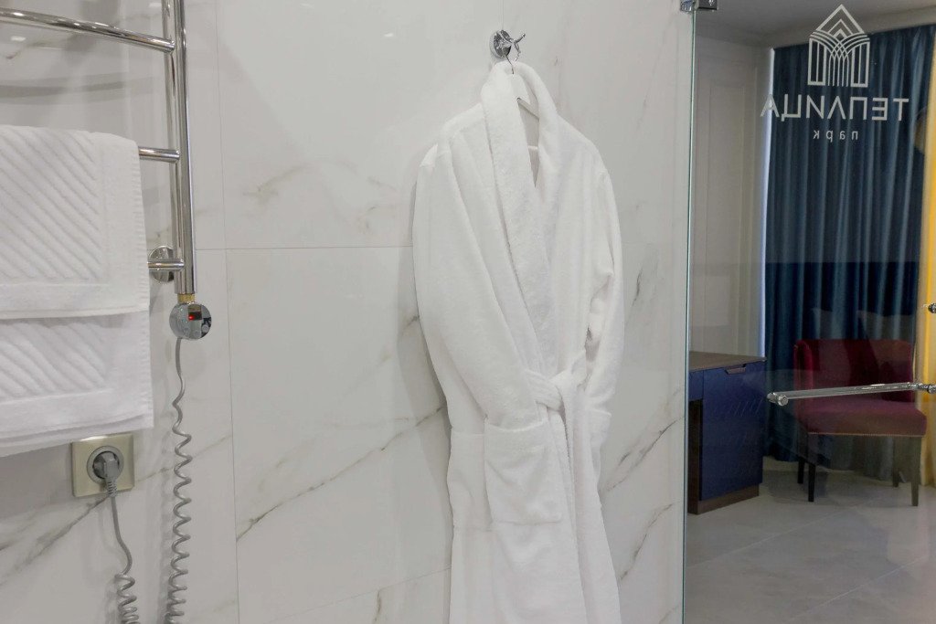 В номере вы найдёте телевизор, мини-бар и халат. Оснащение зависит от выбранной категории номера.
