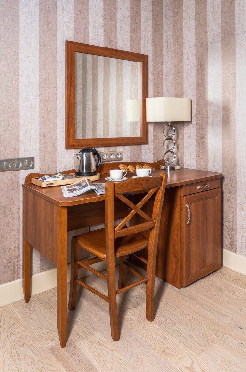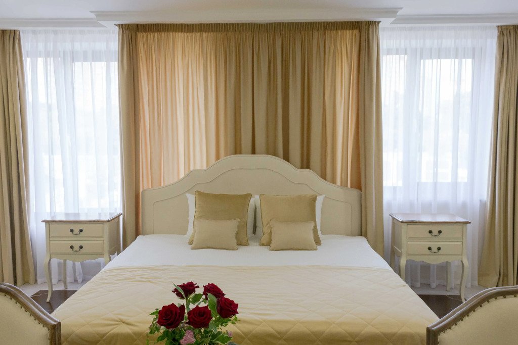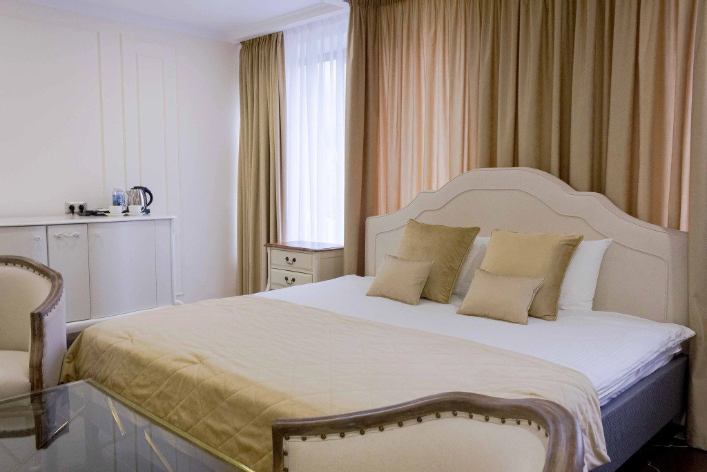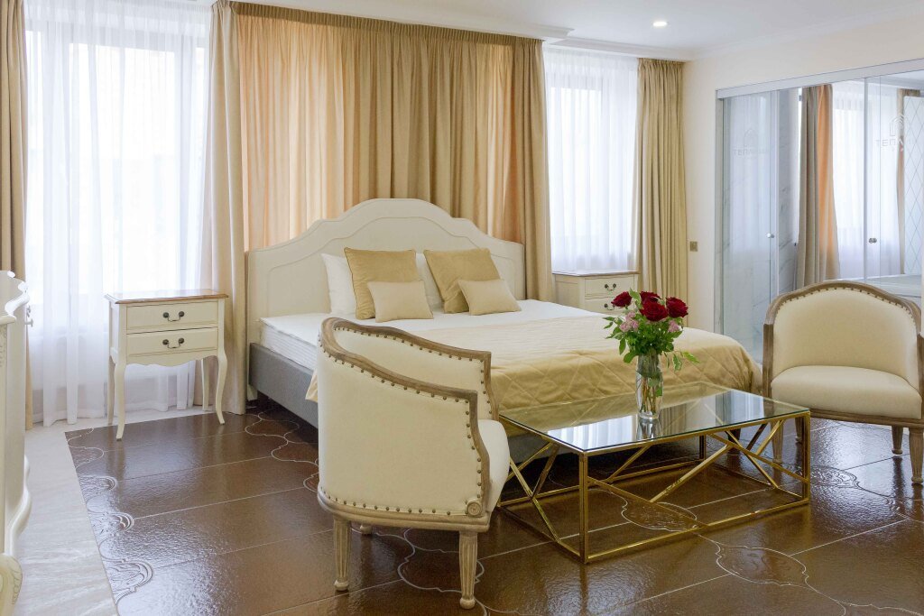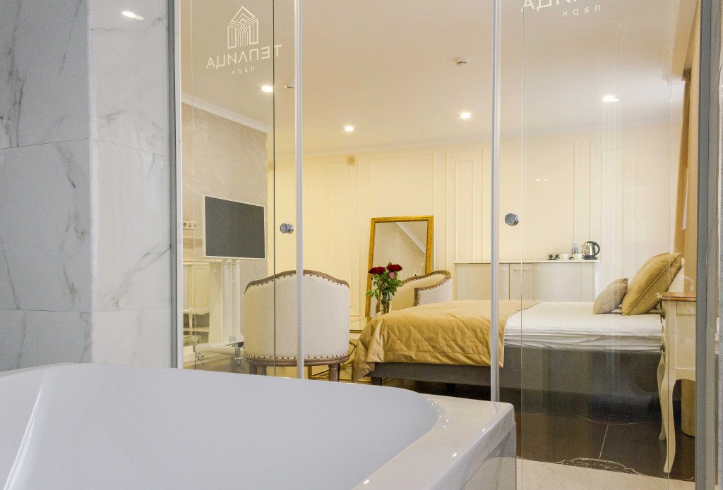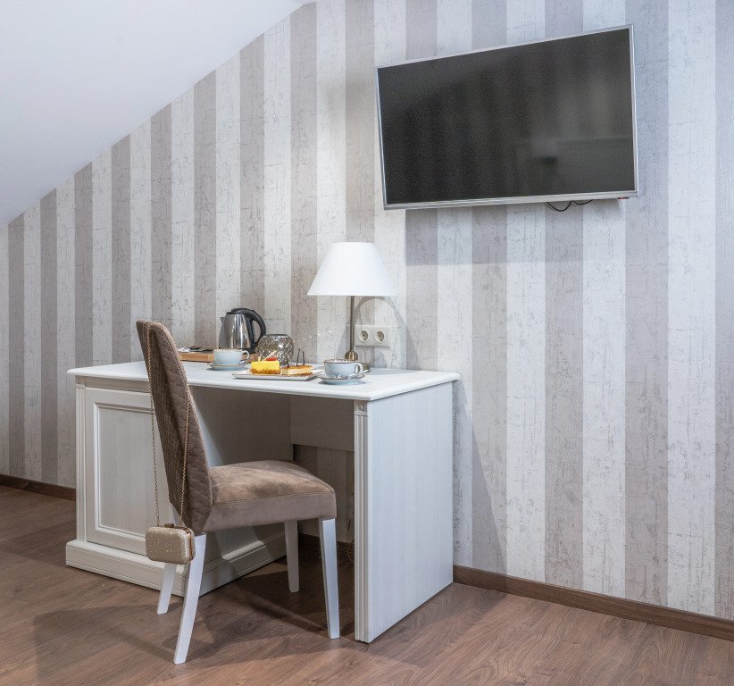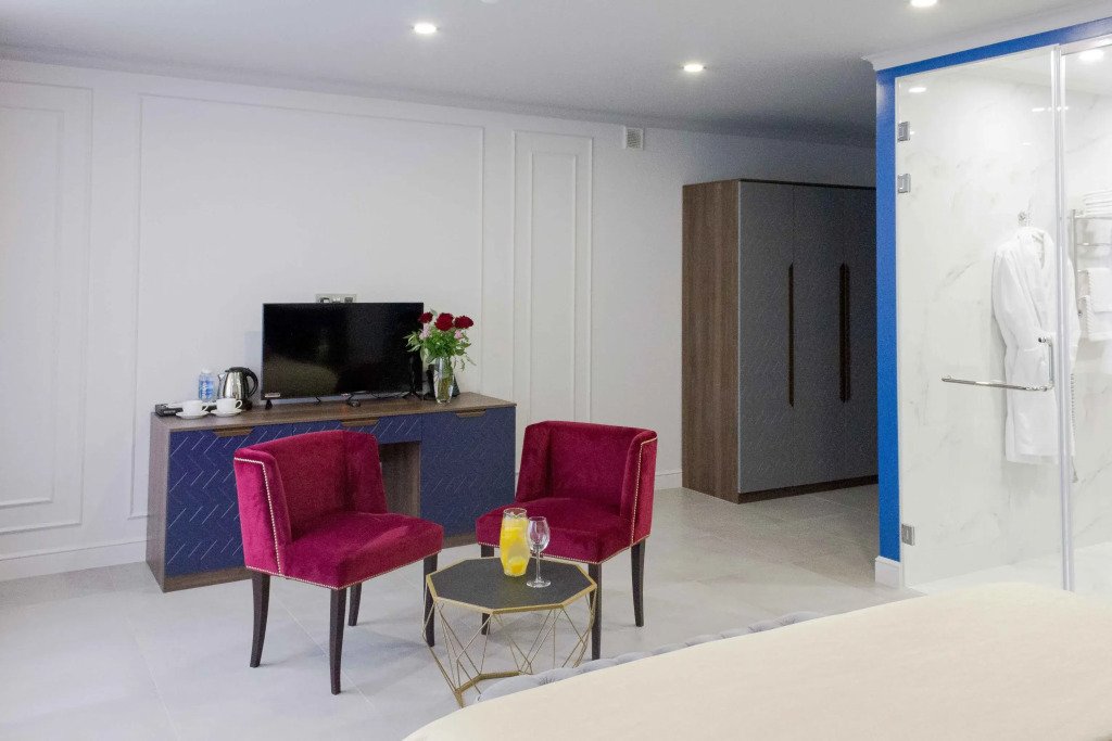 В номере вы найдёте телевизор, мини-бар и халат. Оснащение зависит от выбранной категории номера.
