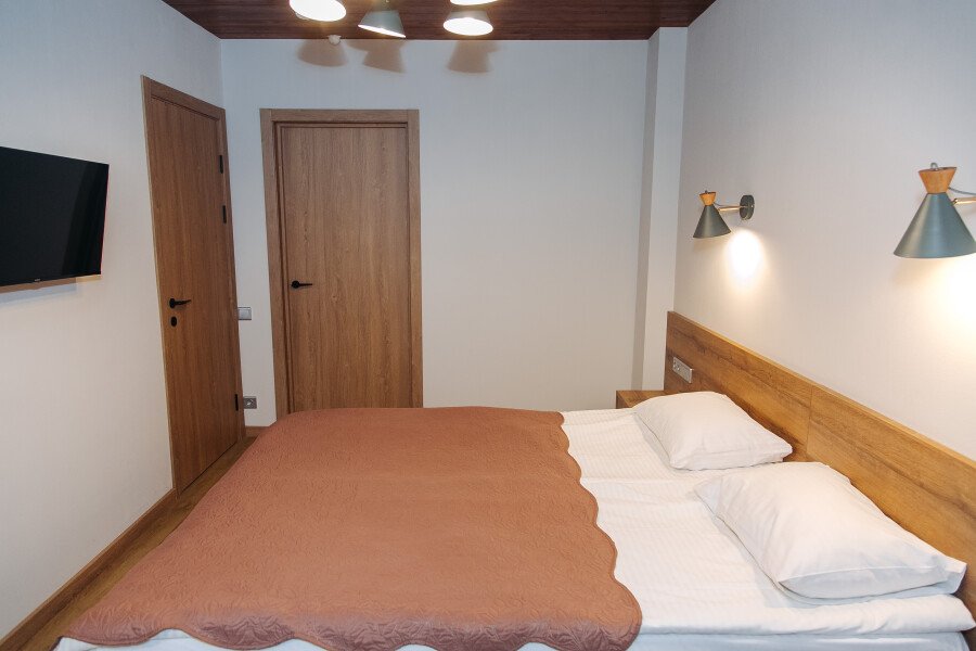Просторные и уютные номера в тёплых тонах, выполнены в классическом эко-стиле, прекрасно подходят как для работы, так и для отдыха. Для Гостей в номере имеется две раздельные кровати с ортопедическим матрасом, плазменная панель, интерактивное спутниковое телевидение, гардероб, письменный стол. Ванная комната европейского стандарта оснащена душем, феном, туалетными принадлежностями.