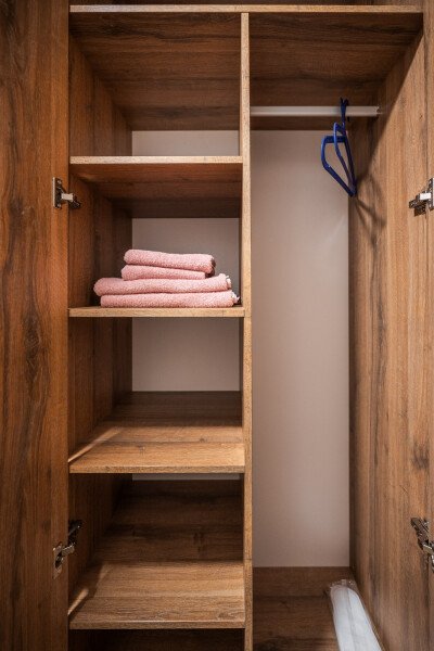Номер категории «Полулюкс» имеет две просторные комнаты, гостиную с мини кухней, спальню с кроватью «king size», шкаф для хранение вещей.