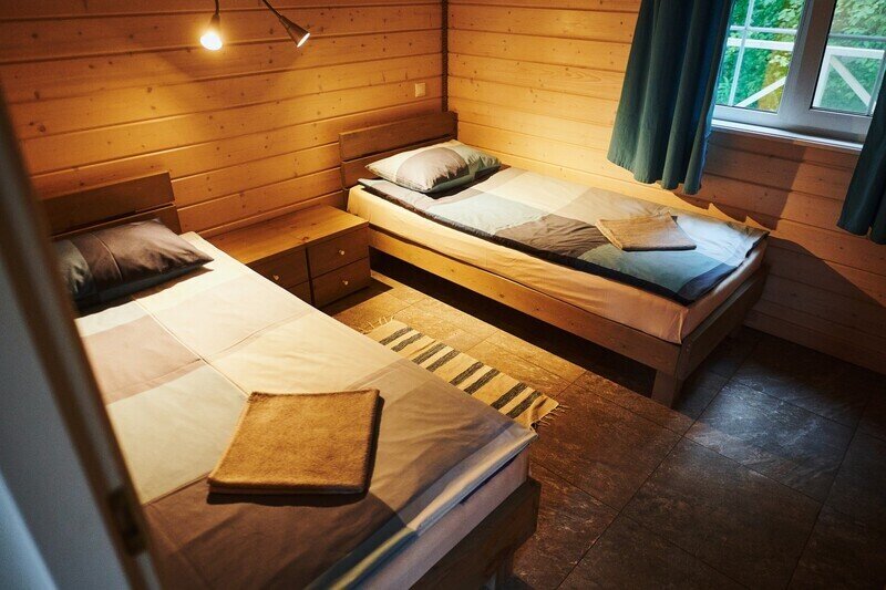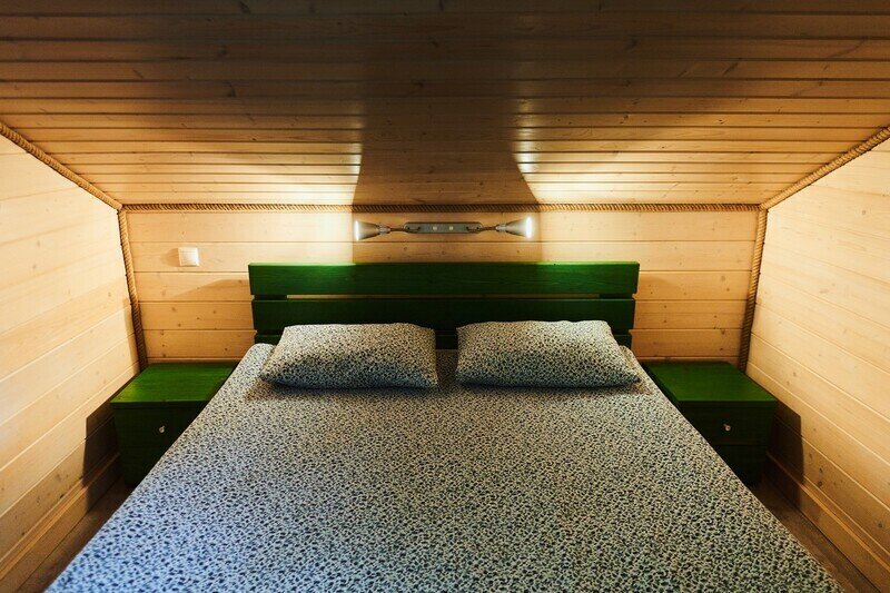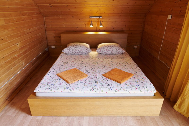 В доме: спальная зона (2 двухъярусные кровати), кухня-гостиная (стол, стулья, холодильник, плита, чайник, все кухонные принадлежности), туалет, душ, постельное белье, полотенца.