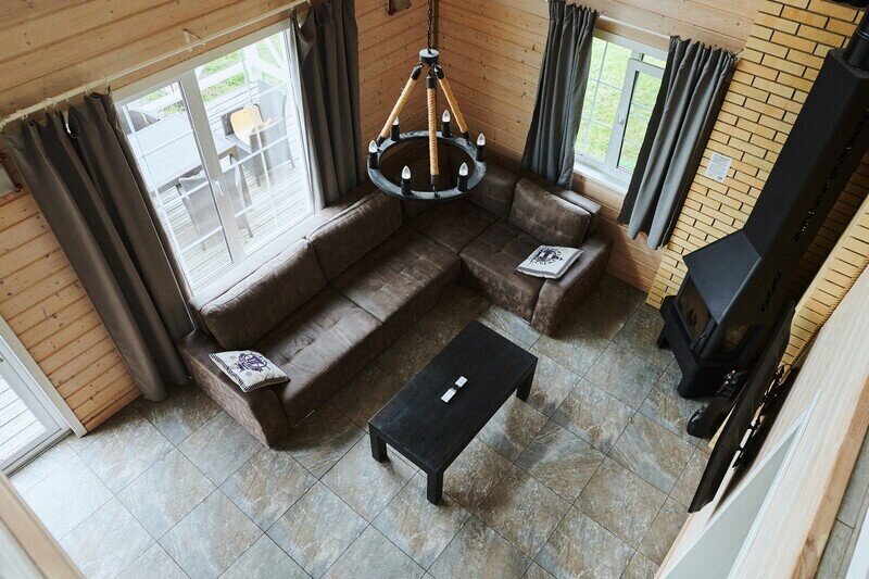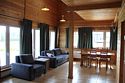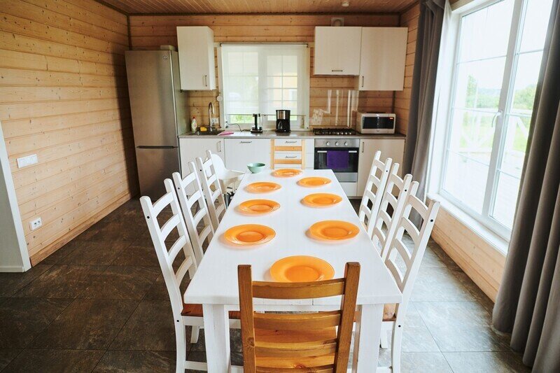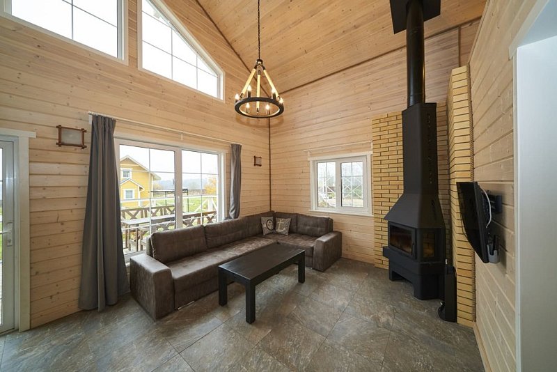 Коттедж со всеми удобствами и отоплением: кухня, 4 спальни (в 2-х спальнях большие двухспальные кровати, в 2-х — по 2 односпальные) + гостиная с диваном-кроватью, 3 туалета, 2 душа, сауна, камин, терраса, полностью оборудованная кухня (холодильник, плита, духовка, чайник, кофеварка, тостер, микроволновая печь, посудомоечная машина, все кухонные принадлежности), стиральная машина, телевизор с плоским экраном, обеденная зона на улице, постельное белье, полотенца, тапочки, утюг, фен, сушилка для белья, все необходимые принадлежности для барбекю.