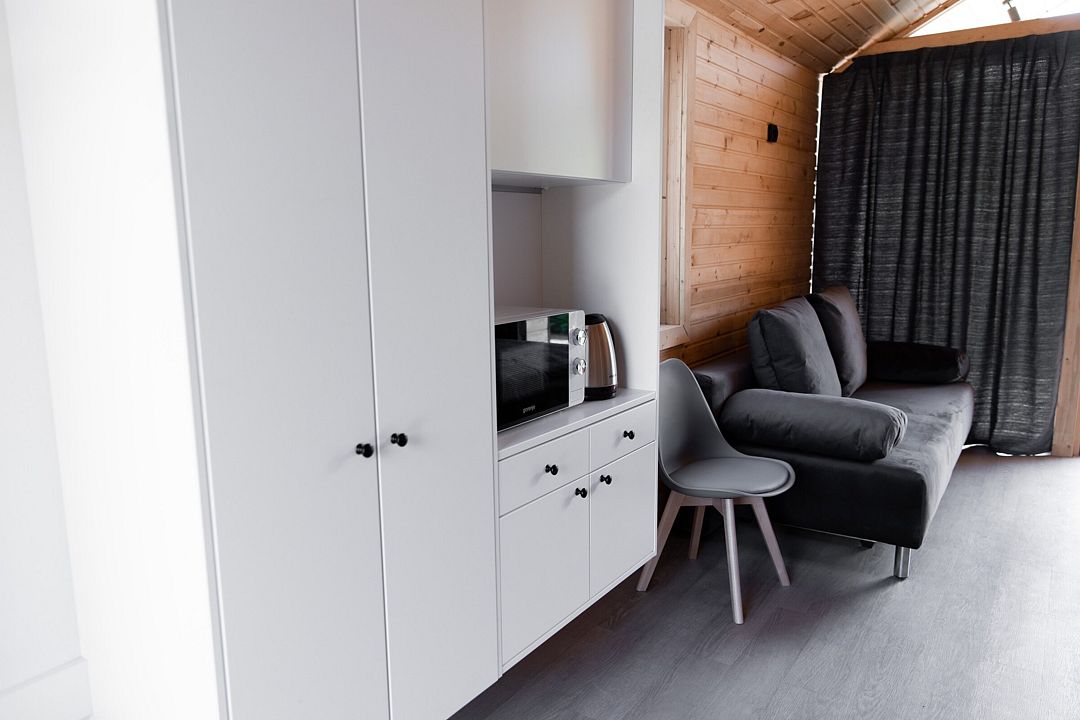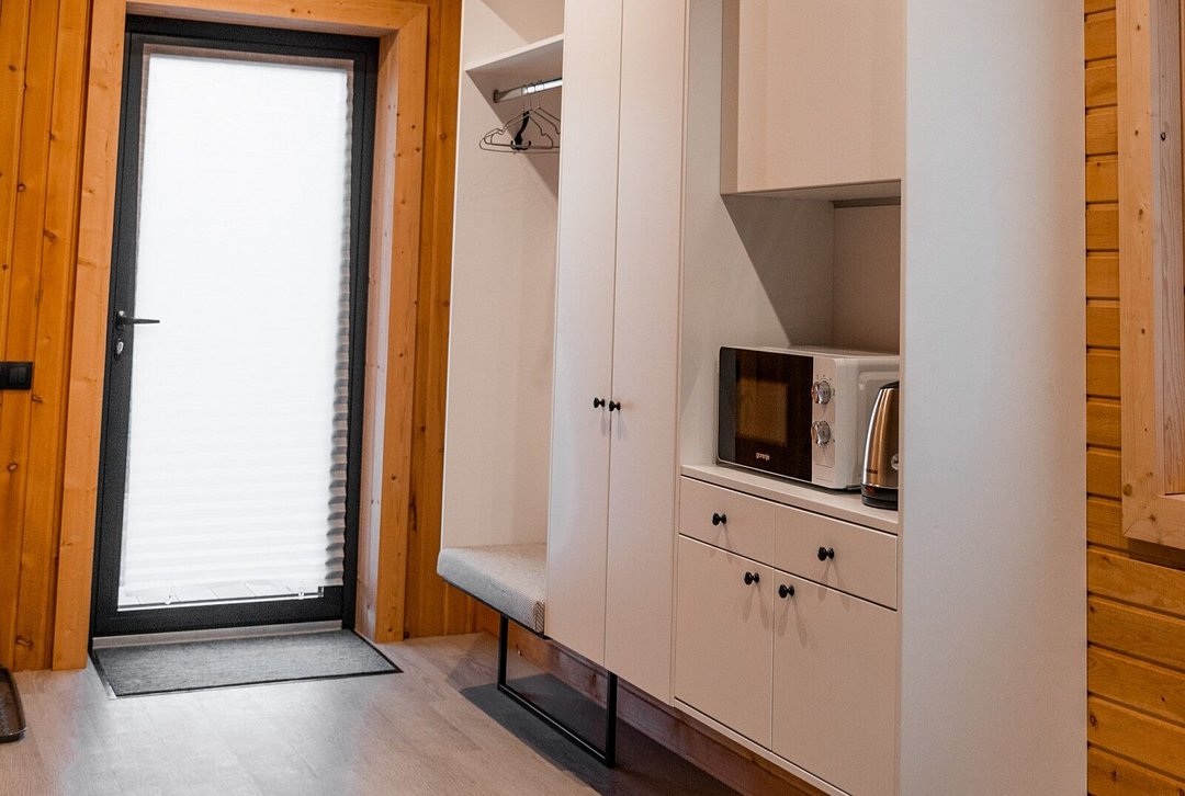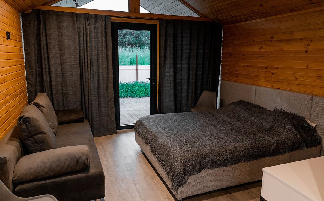 База отдыха разместилась на закрытой территории вдали от шумных дорог. Для размещения предусмотрен комплекс одноэтажных домов, из которых открывается прекрасный вид на горы и лес. Дома полностью укомплектованы для автономного проживания. В каждом домике установлены удобные кровати, оборудован просторный санузел с душем и феном, на мини-кухне – микроволновая печь, холодильник, посуда. Есть место для мангала и терраса.