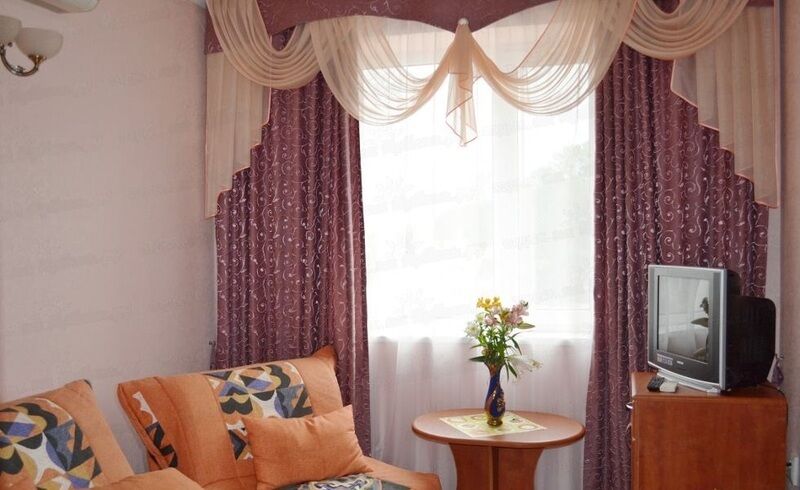В номере: одна двуспальная кровать, два дополнительных места, сплит-система, шкаф/гардероб, трюмо с зеркалом, журнальный столик, тумбочки, диван, кресла, телевизор, холодильник, кухонные принадлежности. Санузел: душ, туалет, туалетные принадлежности, халат, тапочки.