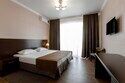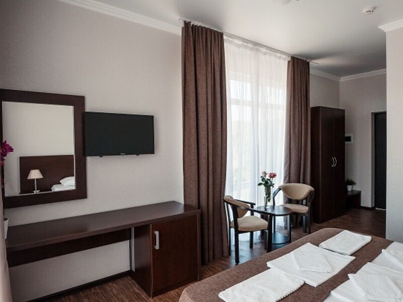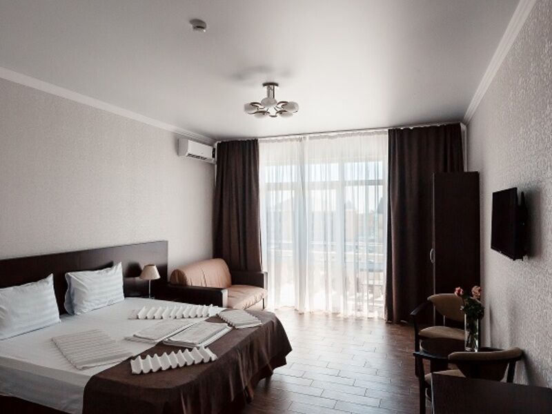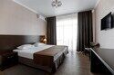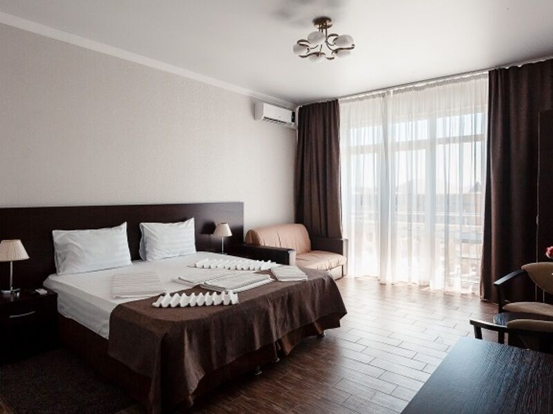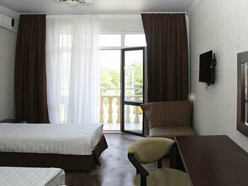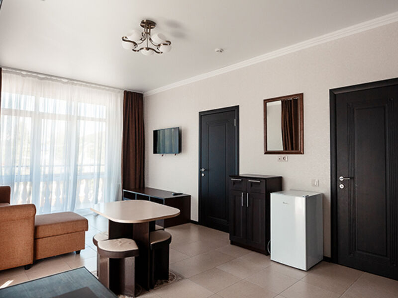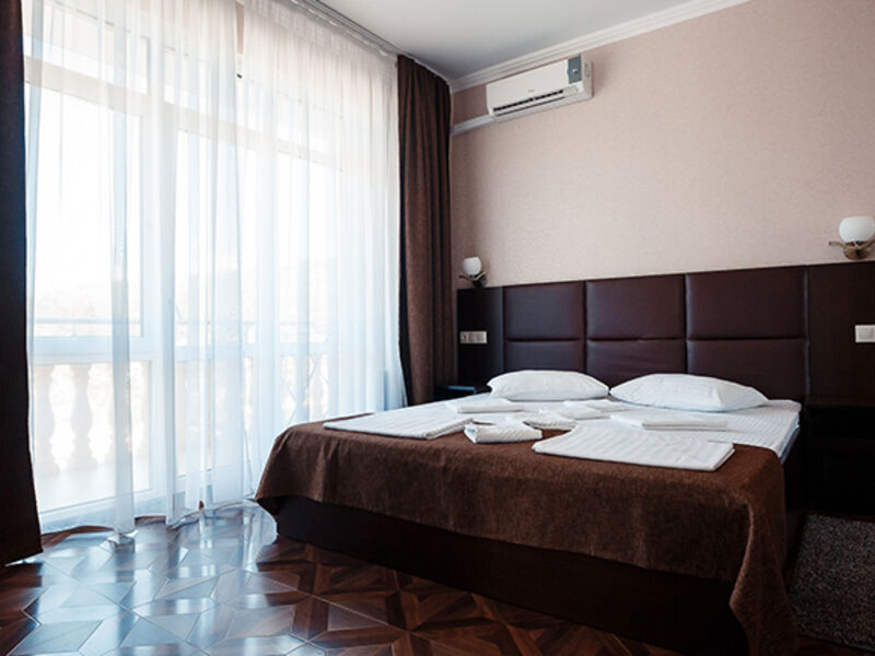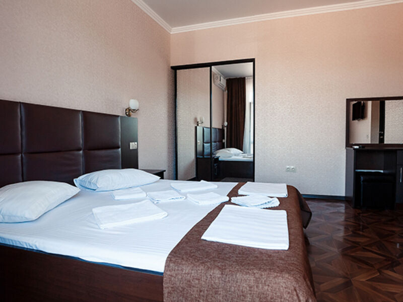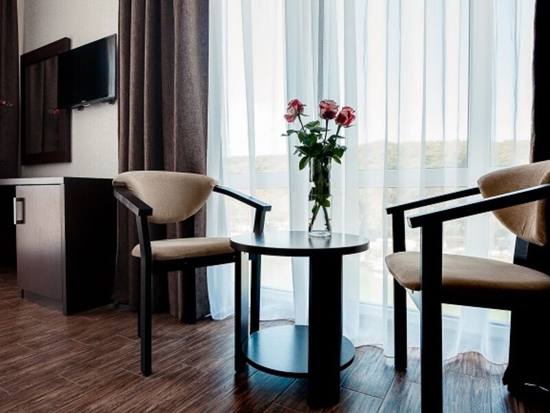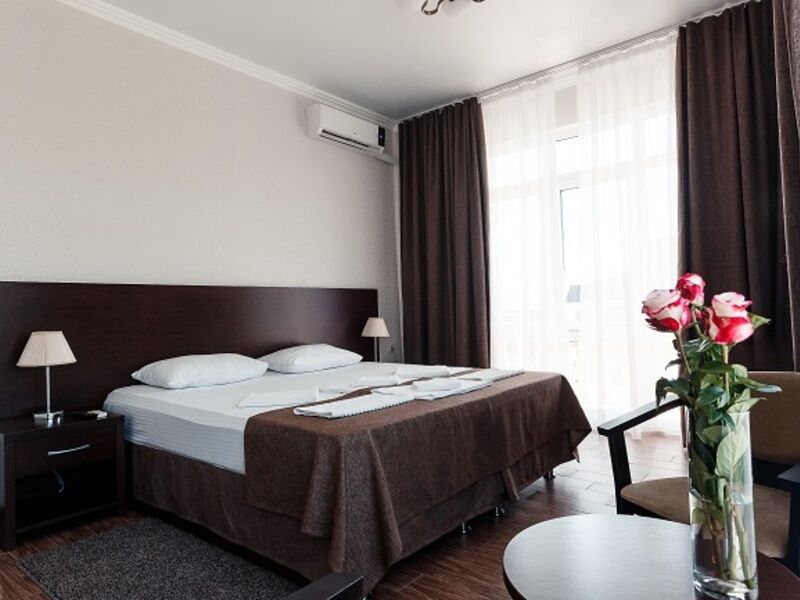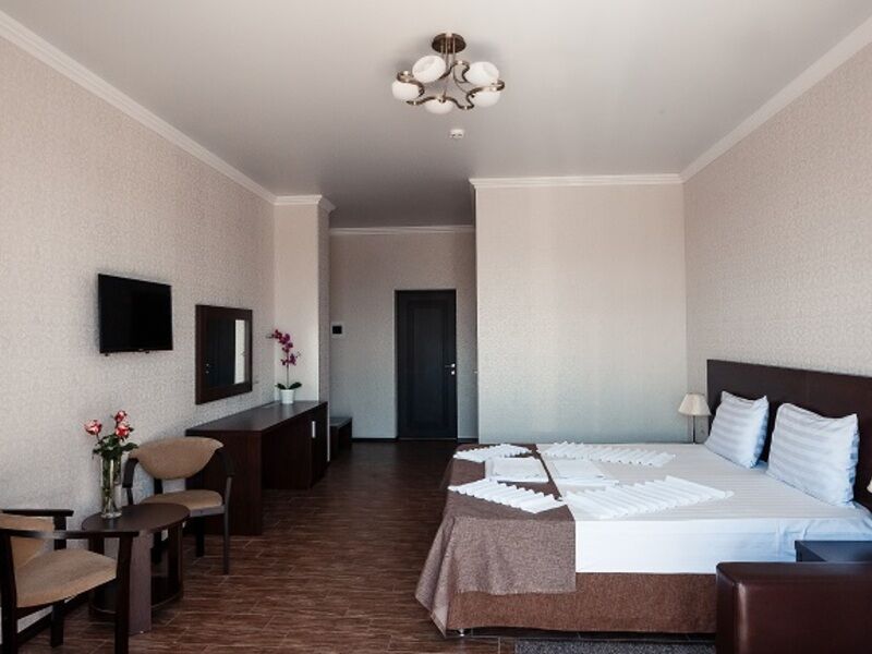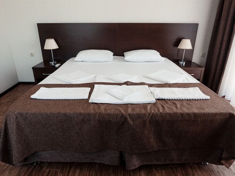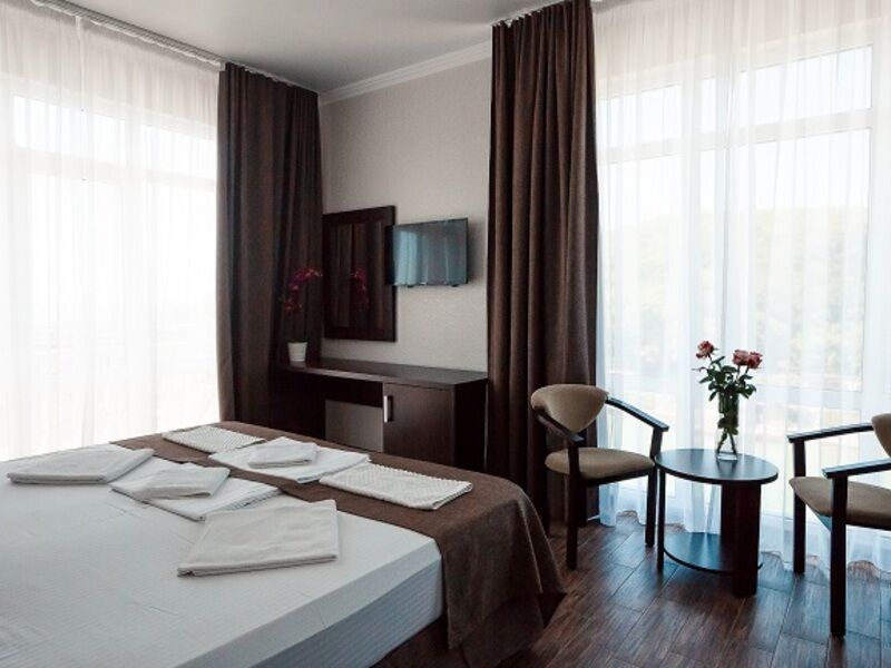 Семейный отдыхДостоинстваКрасиво, уютно, современно. Для ребенка дополнительно установили кресло-кровать. В номере чайник, холодильник, телевизор, журнальный стол. На балконе классный столик, за которым приятно пить кофе. Уборка раз в 3 дня, но по запросу можно чаще вызывать горничную. Есть бассейн, рядом душ и туалет. Лягушатник для детей. Возле корпуса бесплатная автостоянка. Питались в столовой: все вкусно, цены невысокие.