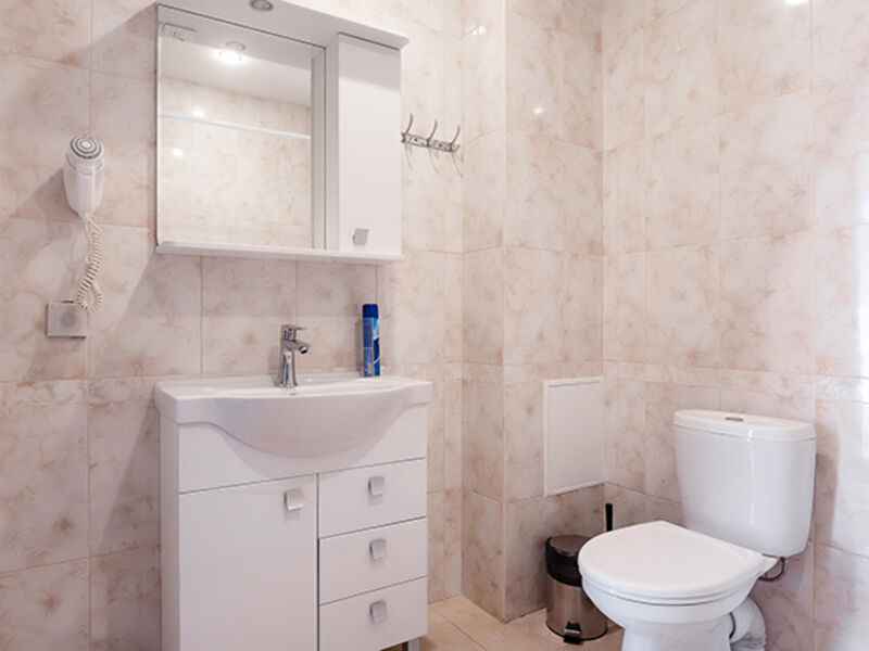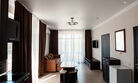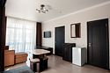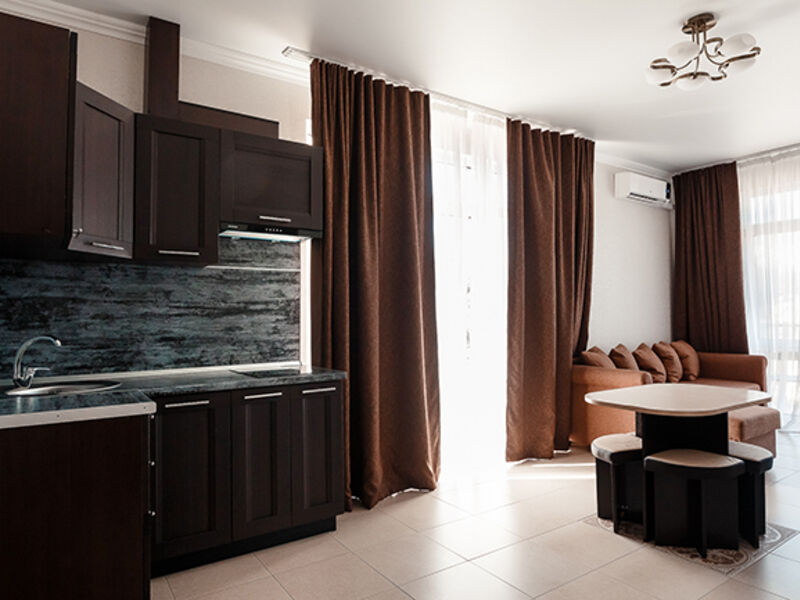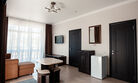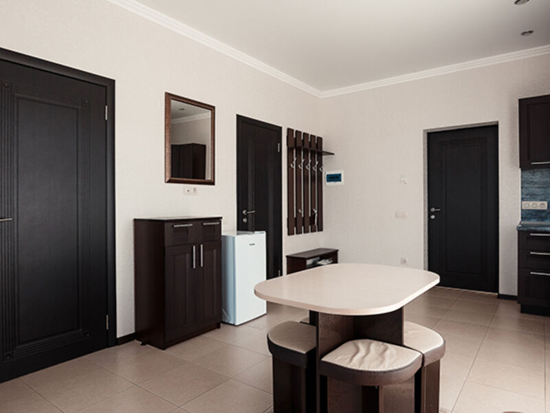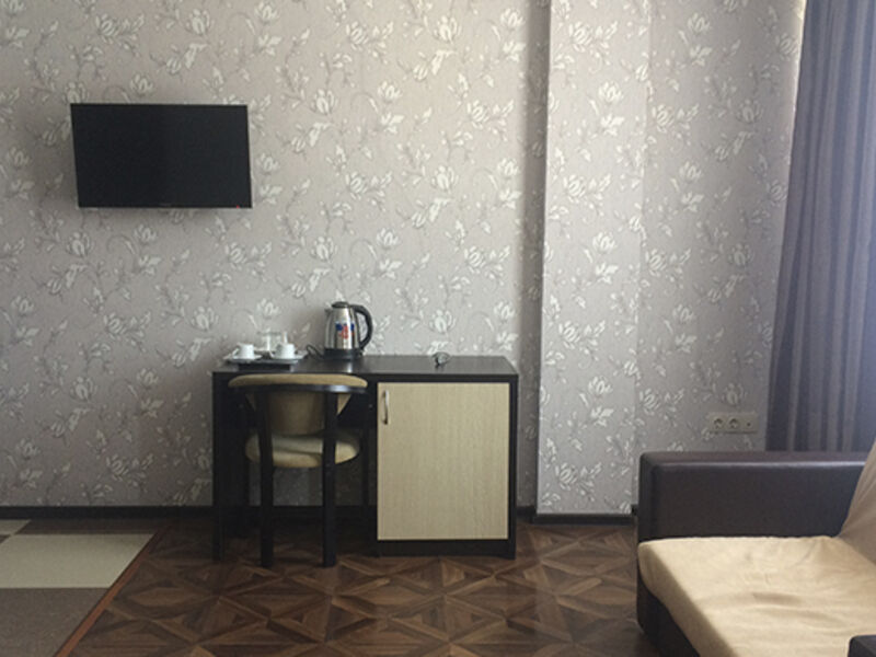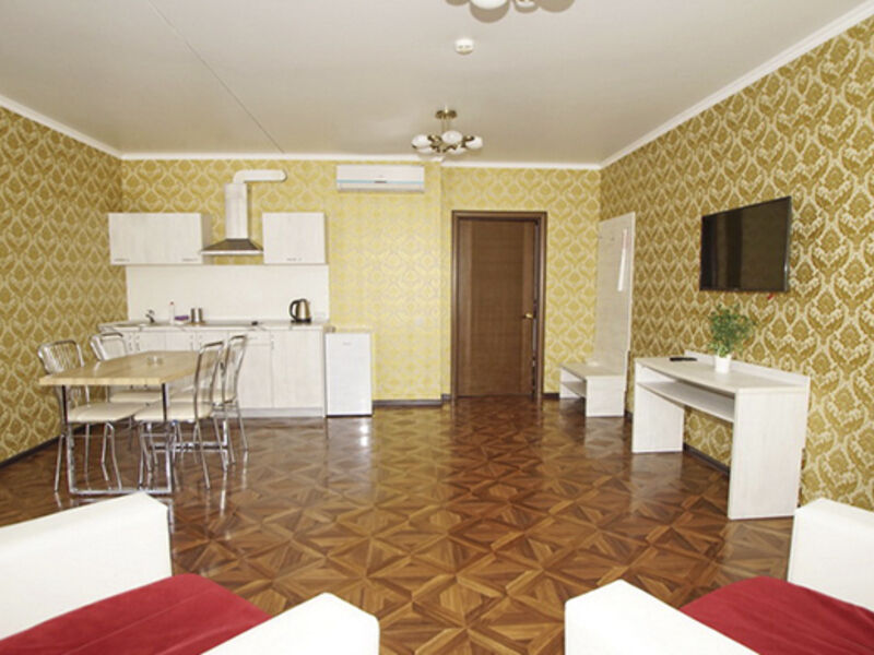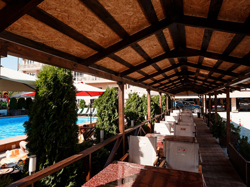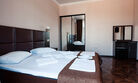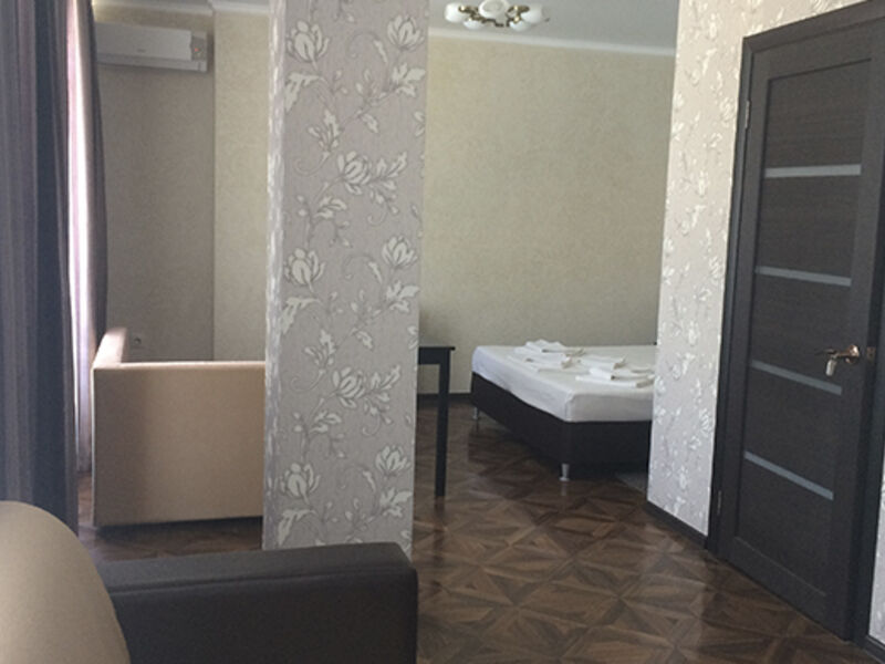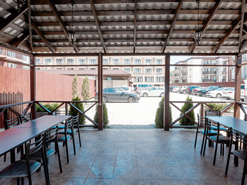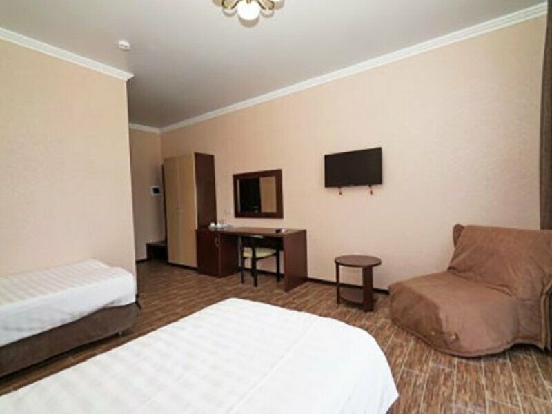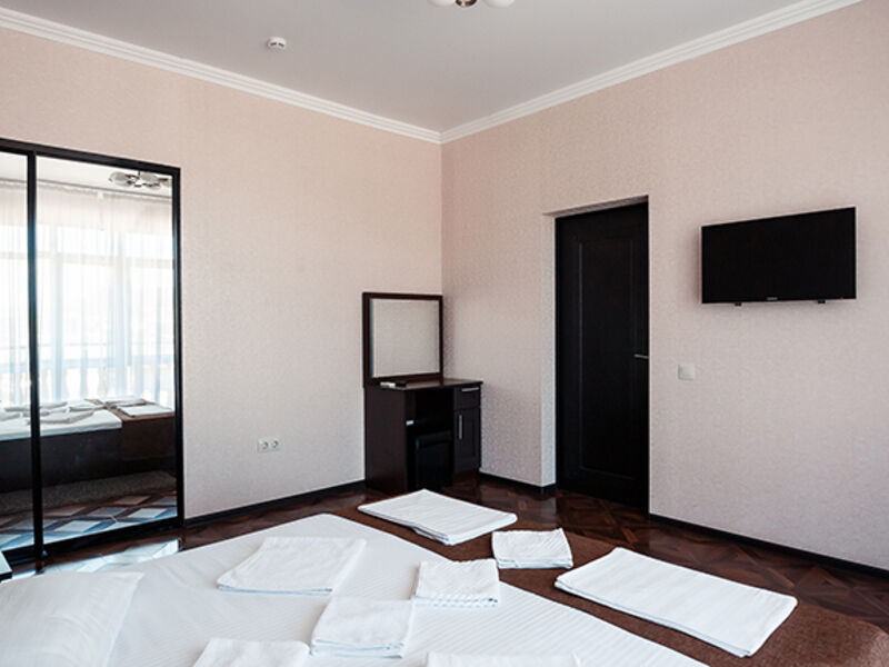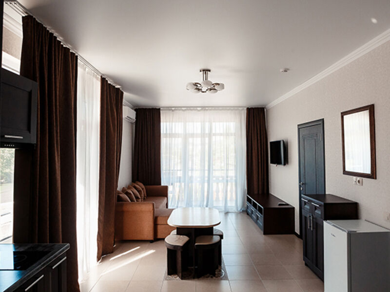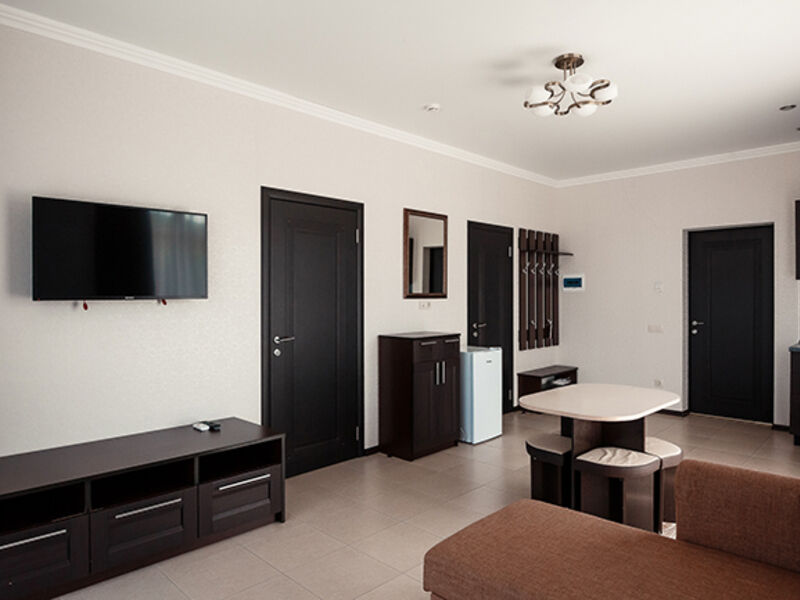 Семейный отдыхДостоинстваКрасиво, уютно, современно. Для ребенка дополнительно установили кресло-кровать. В номере чайник, холодильник, телевизор, журнальный стол. На балконе классный столик, за которым приятно пить кофе. Уборка раз в 3 дня, но по запросу можно чаще вызывать горничную. Есть бассейн, рядом душ и туалет. Лягушатник для детей. Возле корпуса бесплатная автостоянка. Питались в столовой: все вкусно, цены невысокие.