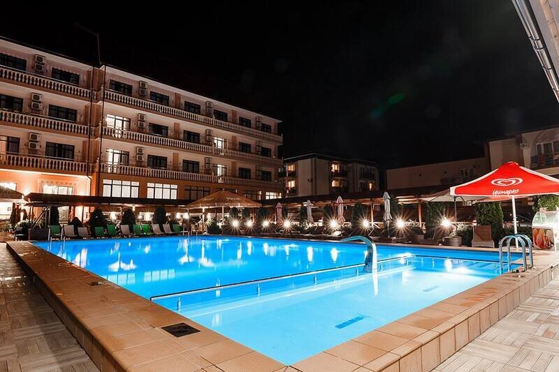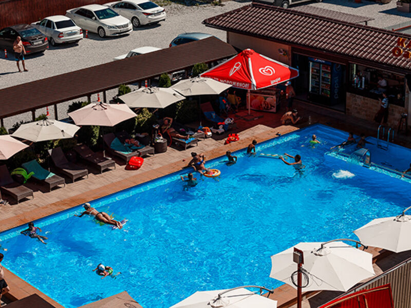Семейный отдыхДостоинстваХорошее место, куда хочется вернуться. Был опыт отдыха в отеле с холодной водой в бассейне. Здесь же вода круглосуточно прогревается. Купались ночью) Пару раз обращались к персоналу, люди реально помогали решить вопросы. Рядом кафе и магазины, на первом этаже — столовая. Есть зеленая зона с мангалами, где можно пожарить шашлыки и посидеть в беседке. Рядом большая бесплатная парковка.