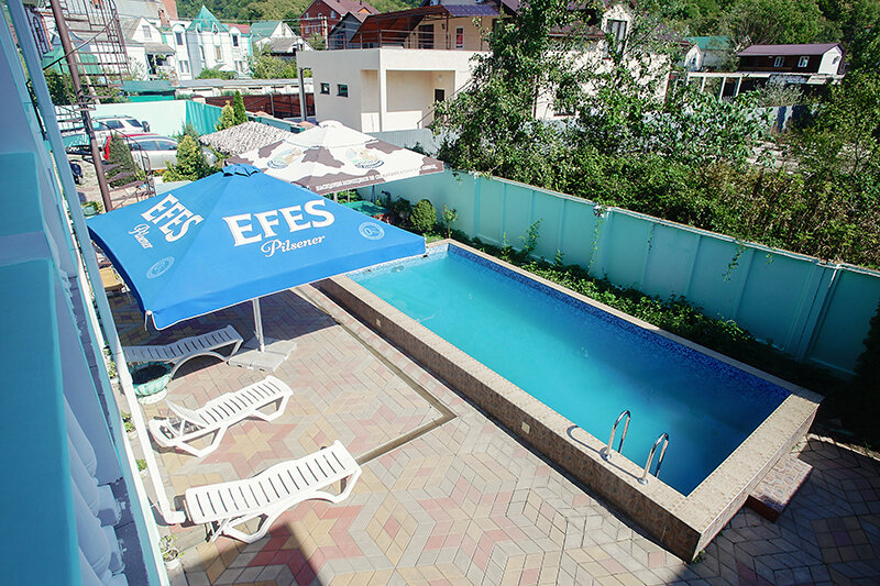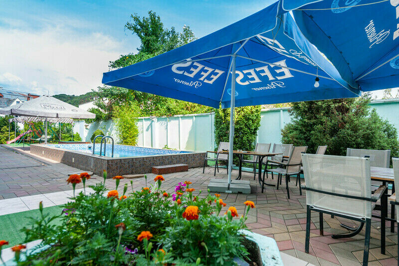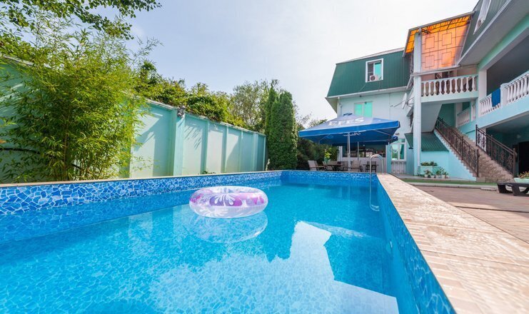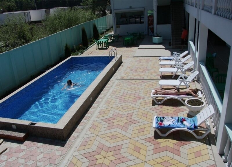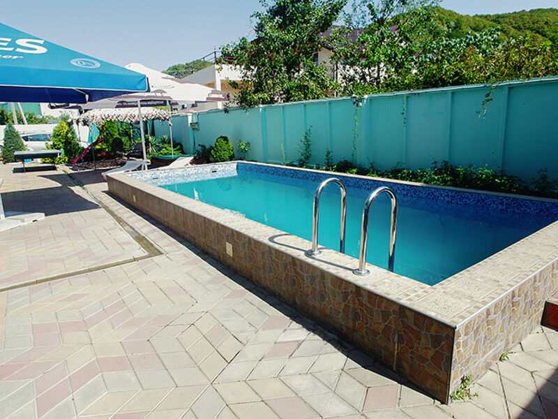 Для комфортного отдыха гостей отеля "Максим" есть открытый плавательный бассейн на территории с уютными зонами отдыха.
