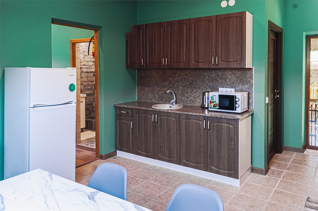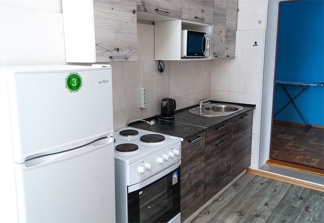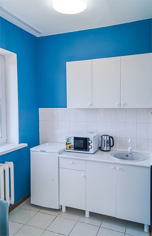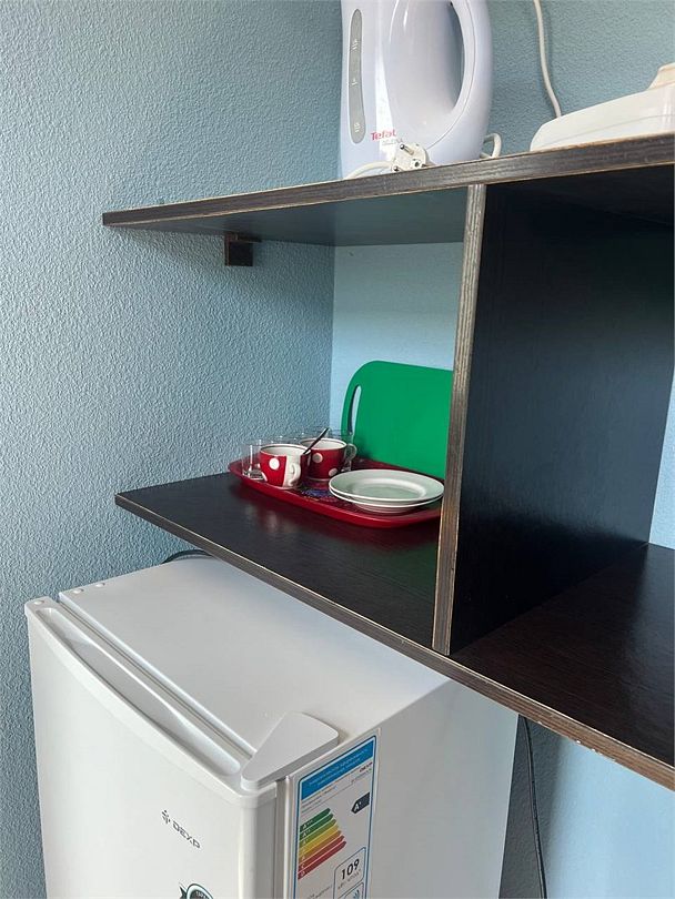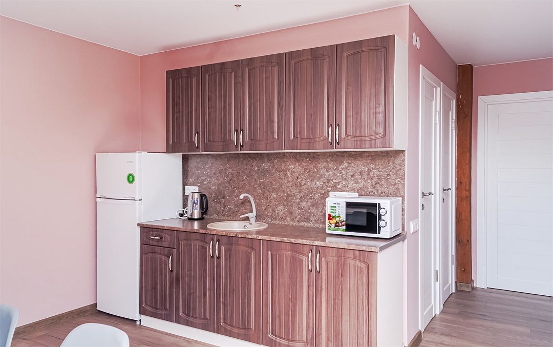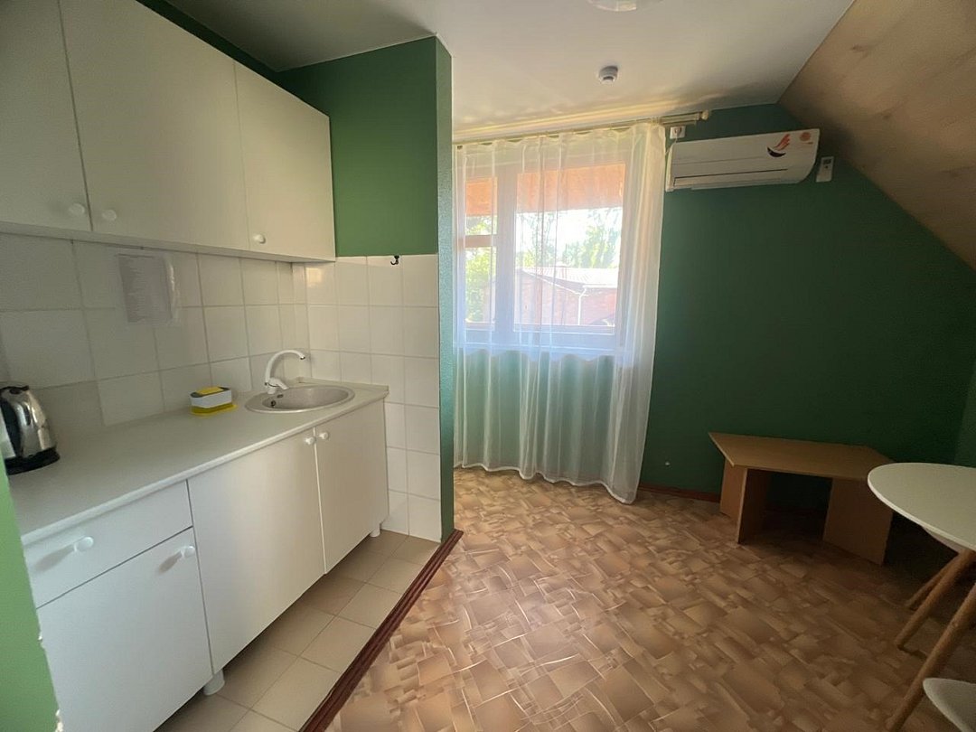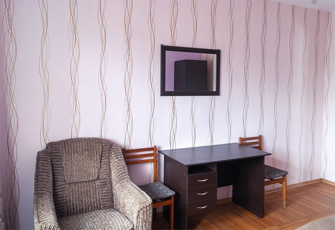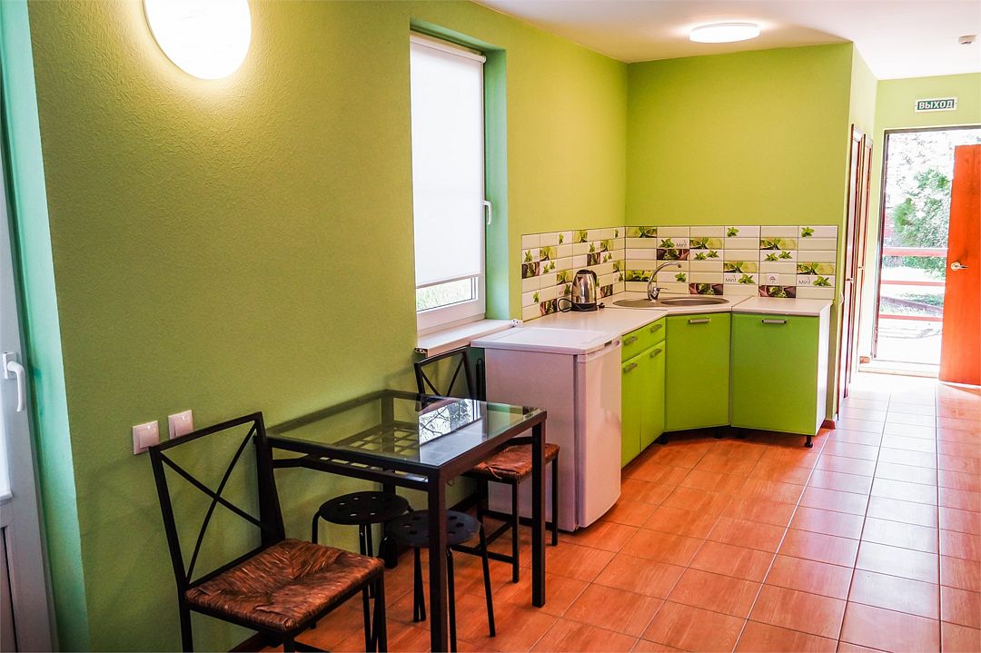 Просторный номер: 2х спальная кровать, односпальная кровать,шкаф, тумбочки, телевизор, кондиционер. Кухонный уголок: стол, холодильник, эл.чайникКомфорт 2х местный (корпус 4 , 1 этаж)