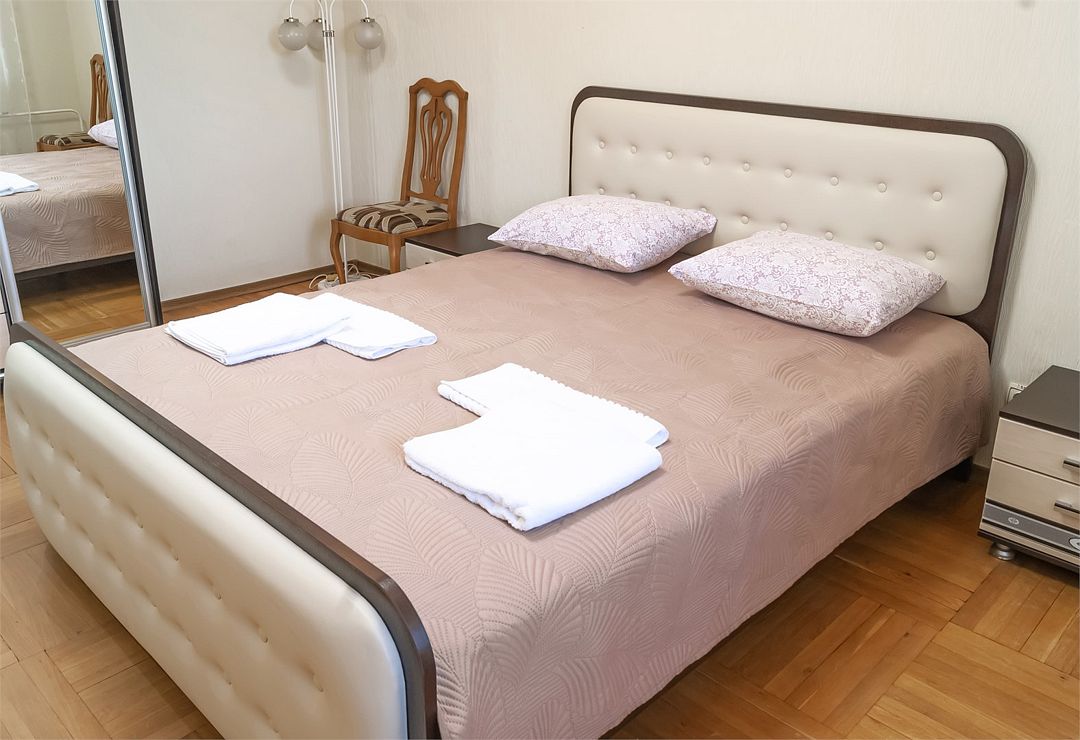 Просторный номер с большим балконом. Гостиная: мягкая мебель, телевизор, журнальный столик, декоративные шкафы. кондиционер. Спальня: большая 2х спальная кровать, тумбочки, шкаф для одежды, туалетный столик с зеркалом и пуфом. стулья, кондиционер. Кухонный уголок: стол, стулья, холодильник, эл.чайникУслуги и удобства