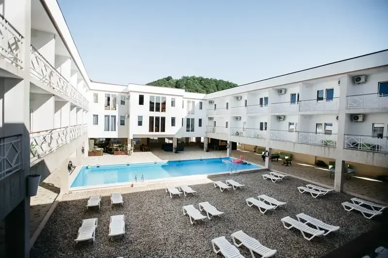 Отель расположен в 500 метрах от Черноморского побережья в поселке Новомихайловский. Посёлок находится на южном склоне Главного Кавказского хребта. Поселение находится в долине реки Нечепсухо и с трёх сторон окружен горными грядами со смешанным сосновым и лиственным лесом. Средние высоты на территории посёлка составляют около 30 метров над уровнем моря.