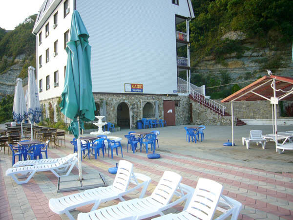 Читать полностьюМежду кафе "Династия" и бассейном расположились эти замечательные зонтики и столики. Здесь можно заказать любые блюда. И не важно в чем вы одеты: в купальниках и плавках (чего никак нельзя делать в столовых) или в дресс-коде.