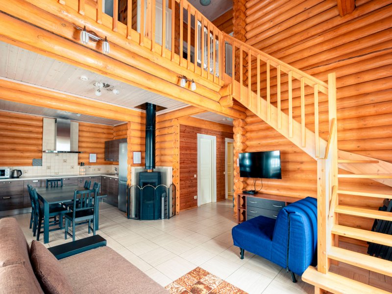 Двухэтажный коттедж с камином, обеспеченный всеми необходимыми удобствами для комфортного проживания и отдыха.
