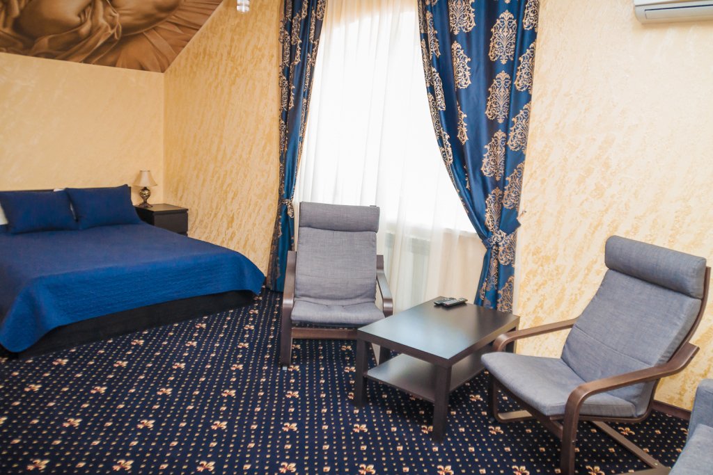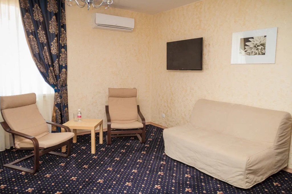 В номере вы найдёте душ, телевизор, мини-бар, халат и тапочки. Оснащение зависит от выбранной категории номера.