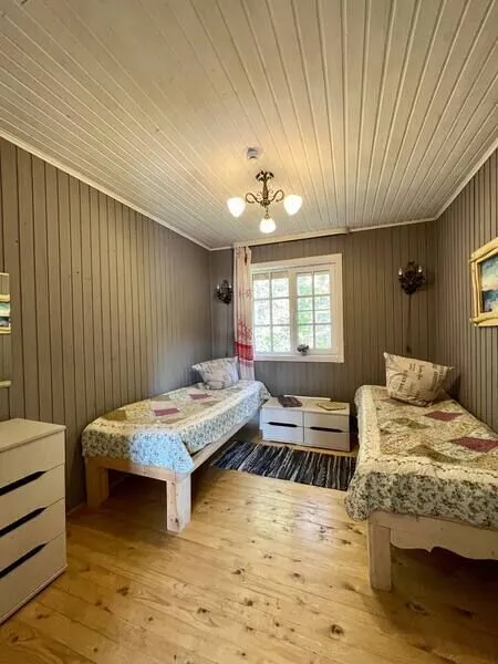6 односпальных кроватей, 1 двуспальная кровать, диван. Санузел с душем, мини-кухня